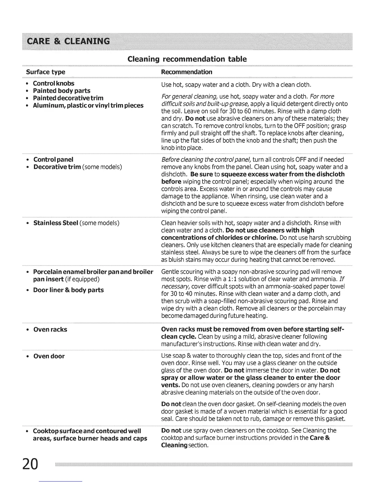 ,,, Stainless Steel (some models) Clean heavier soils with hot, soapy water and a dishcloth. Rinse with