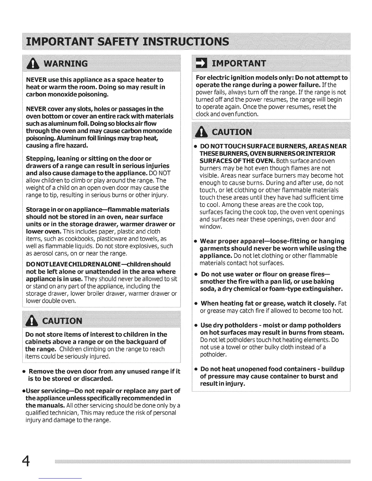 For electric ignition models only" Do not attempt to