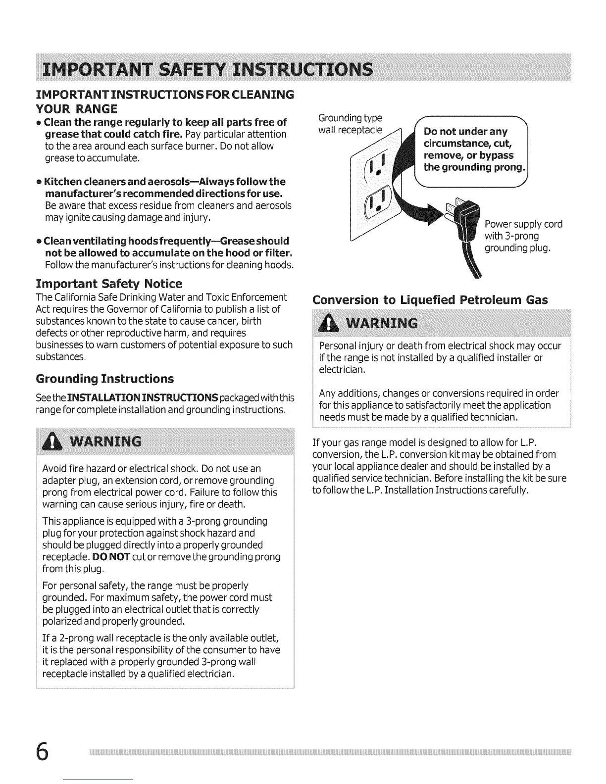 range for complete installation and grounding instructions.