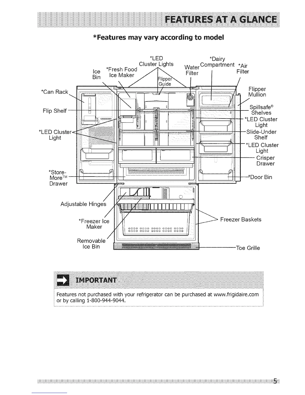 Features not purchased with your refrigerator can be purchased at www.frigidaire.com