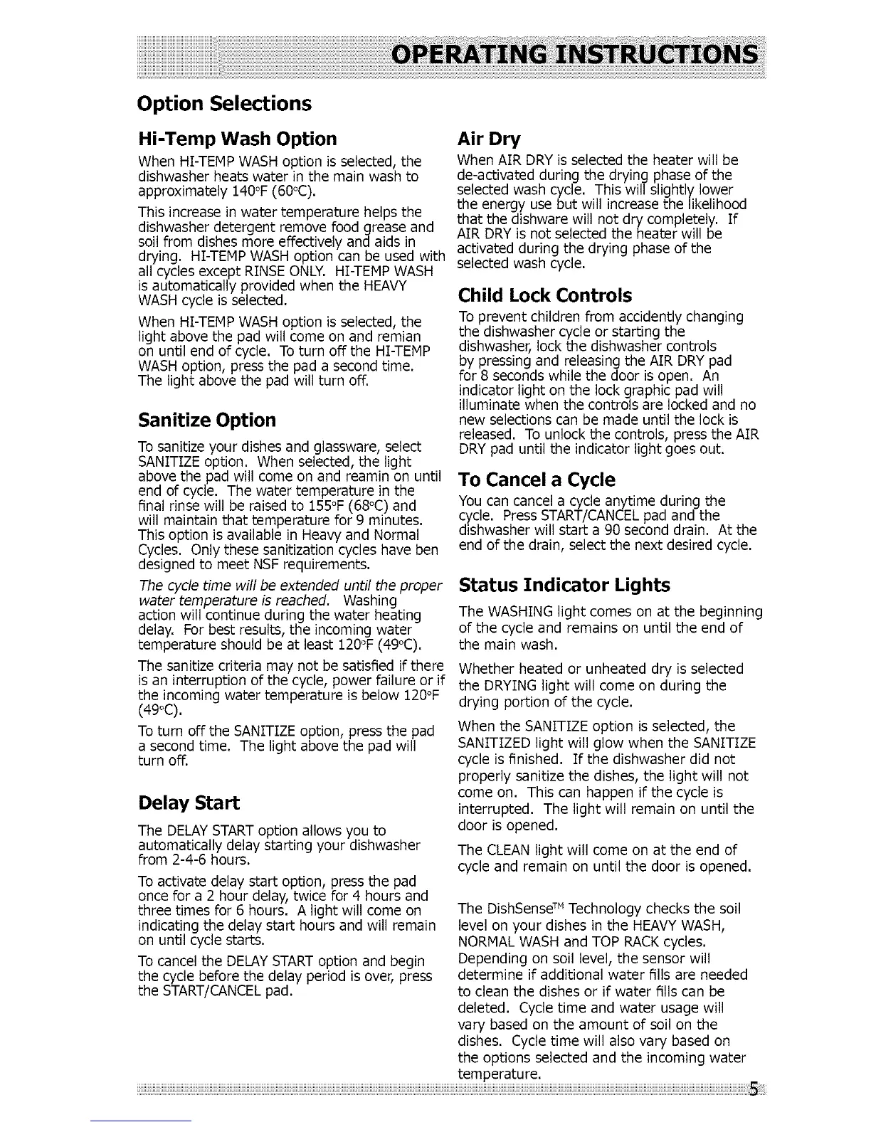 all cycles except RINSE ONLY. HI-TEMP WASH