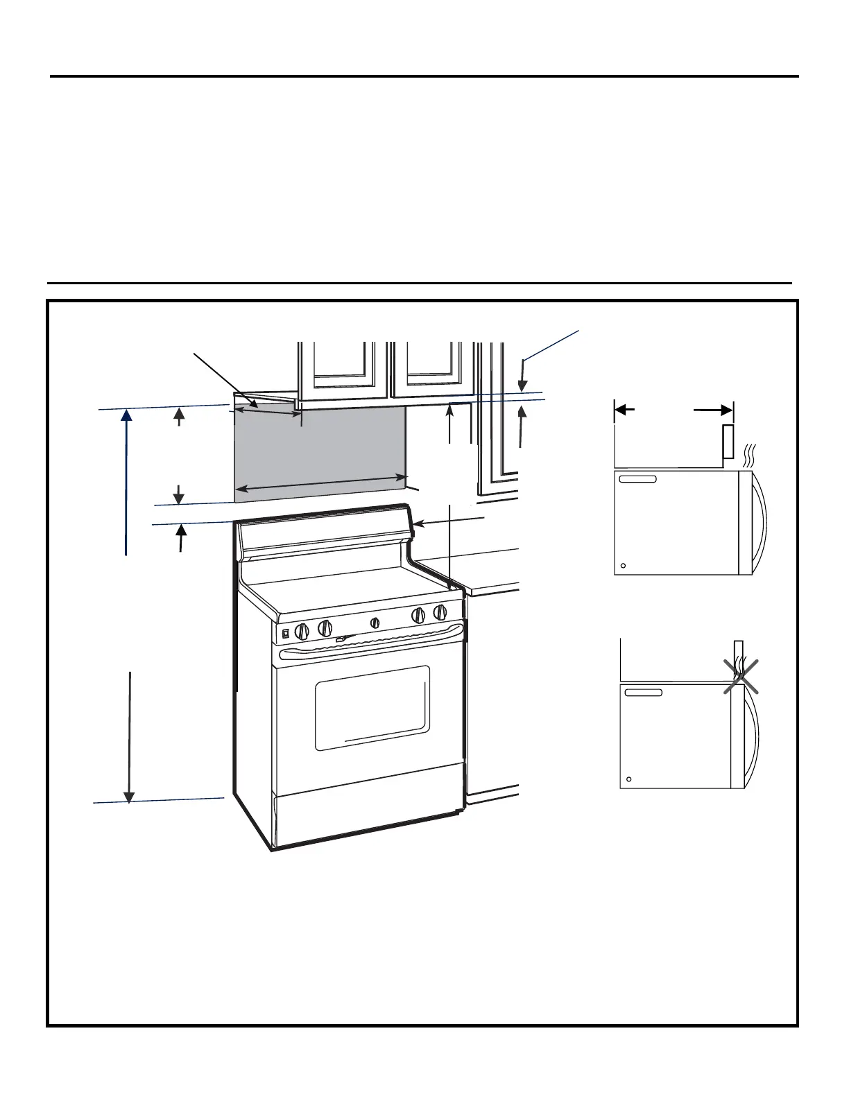 • The space between the cabinets must be 30" (76.2 cm) wide and free of obstructions.