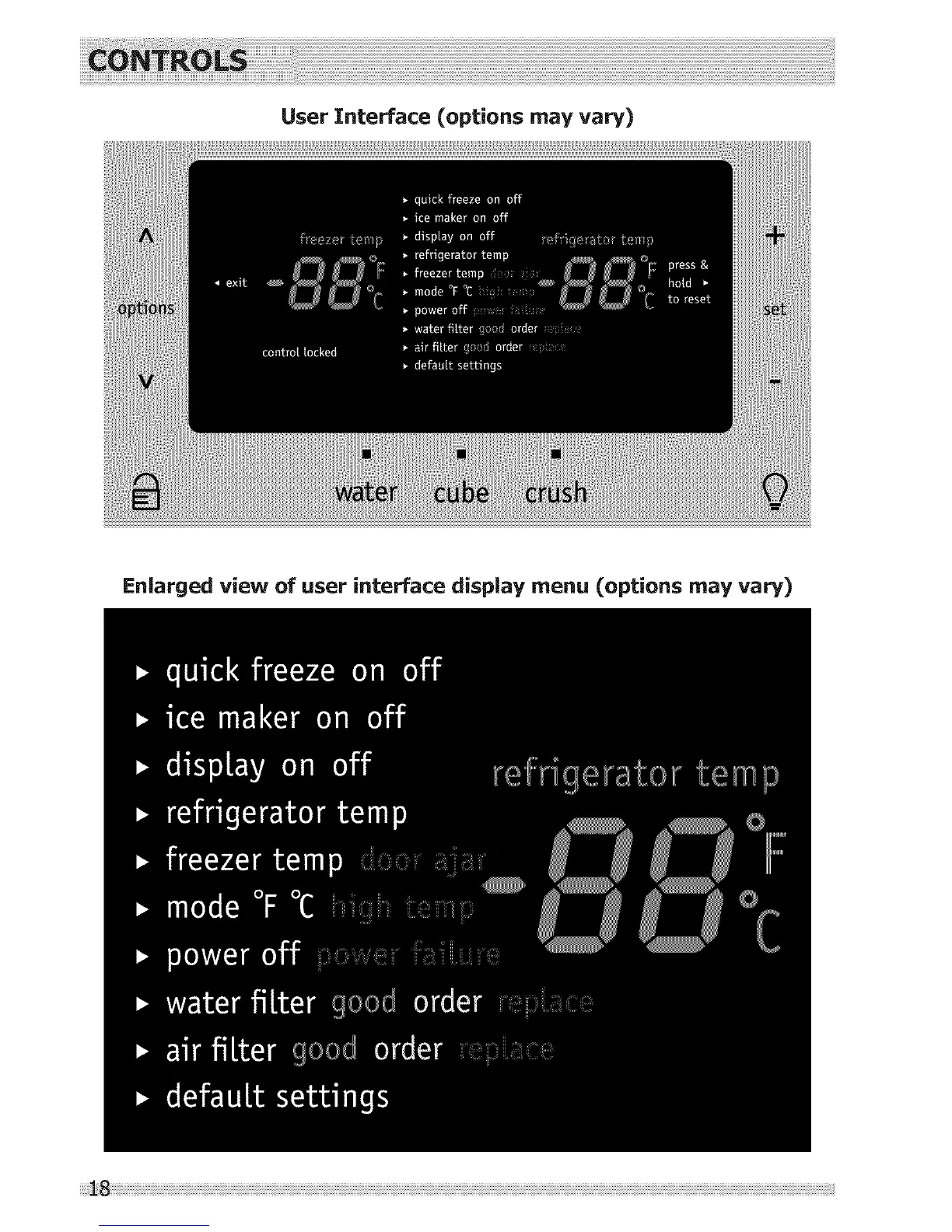 Frigidaire LGHB2867PF5 - Refrigerator Controls Overview; User Interface Description; Interface Display Menu