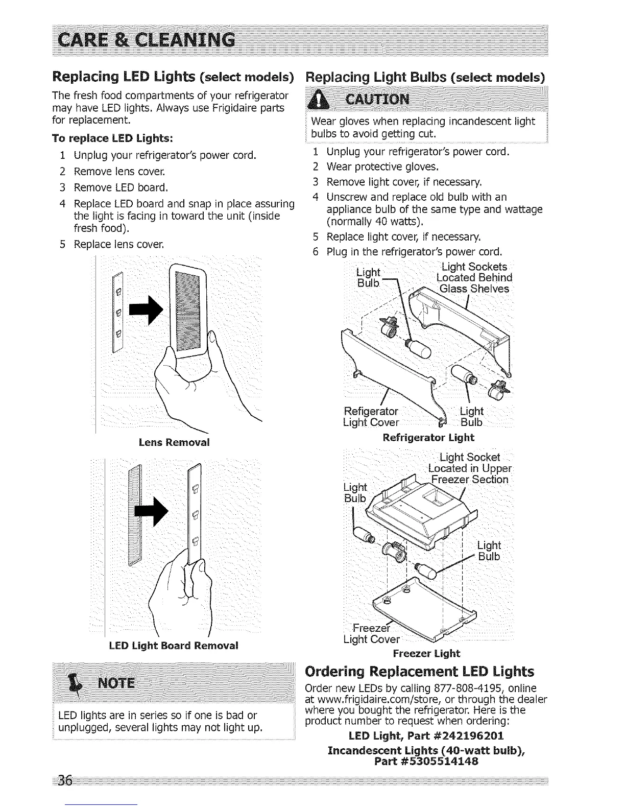 may have LED lights. Always use Frigidaire parts