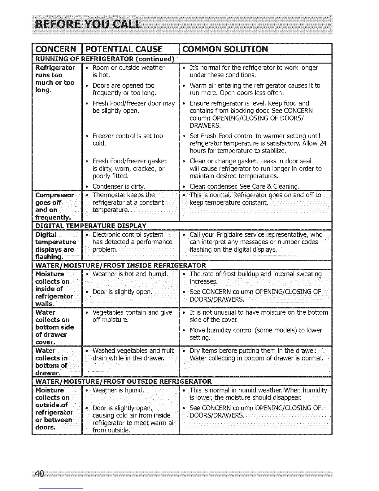 Digital I Electronic control system I _Call your Frigidaire service representative, who