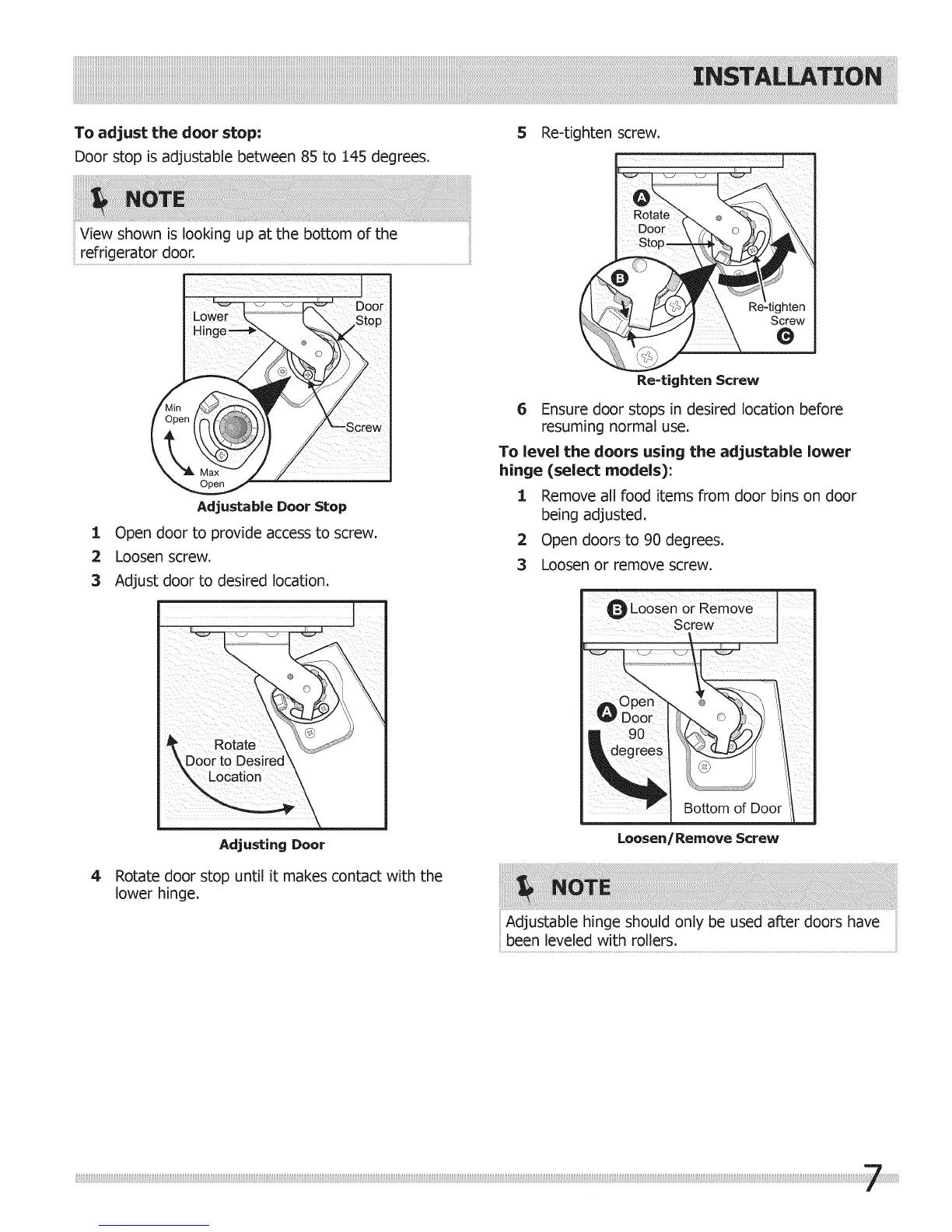 To adjust the door stop: