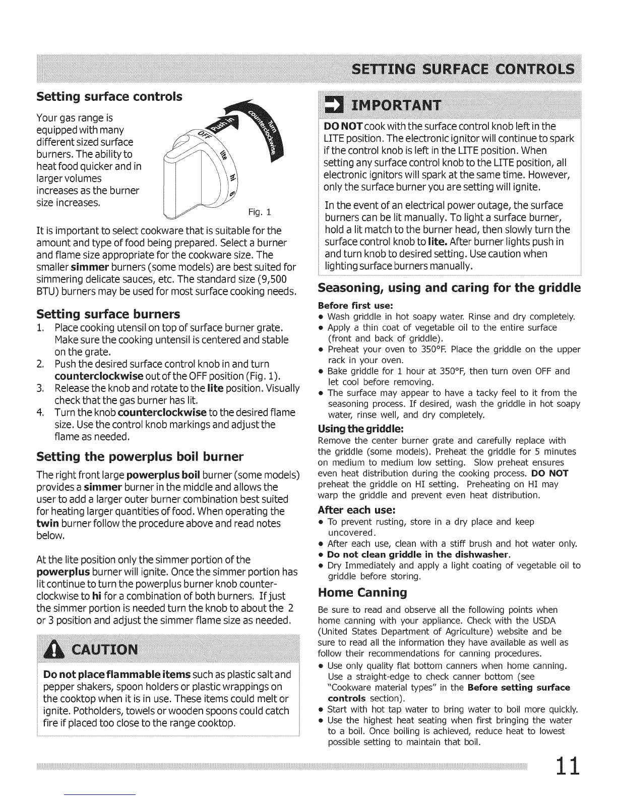 burners can be lit manually. To light a surface burner,