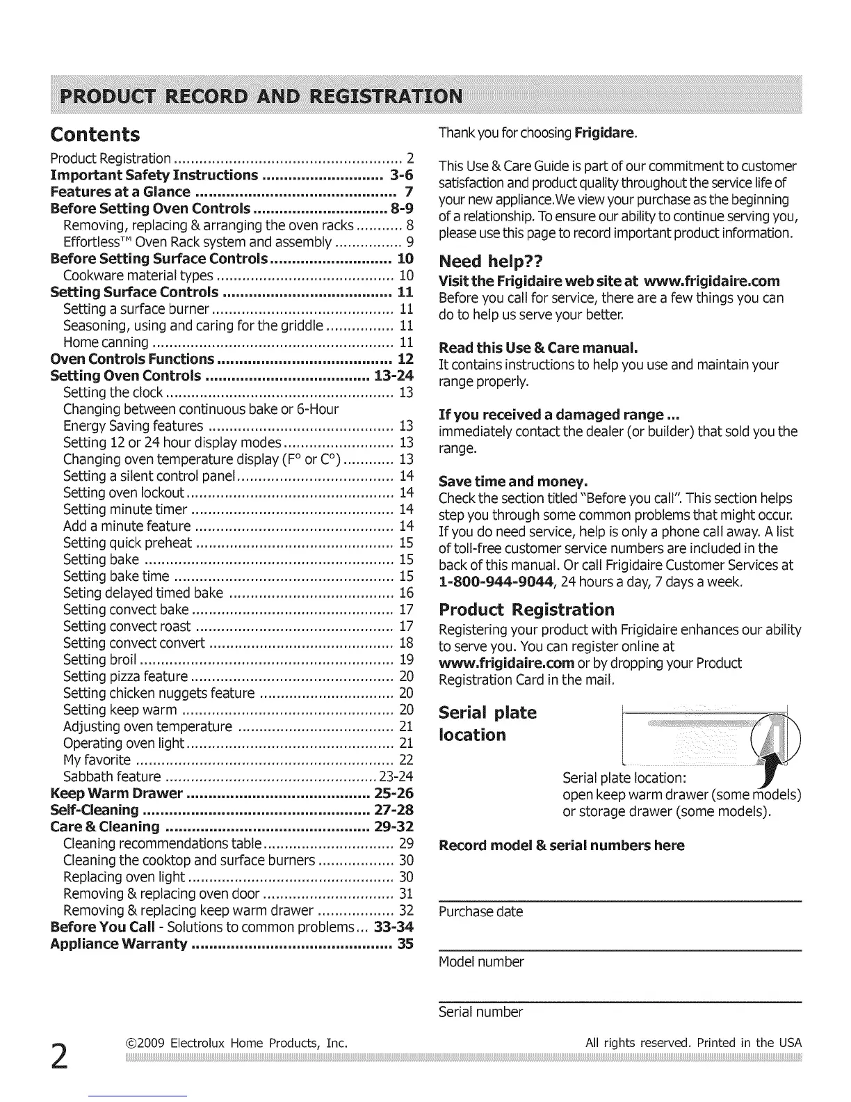 @2009 Electrolux Home Products, Inc. All rights reserved. Printed in the USA