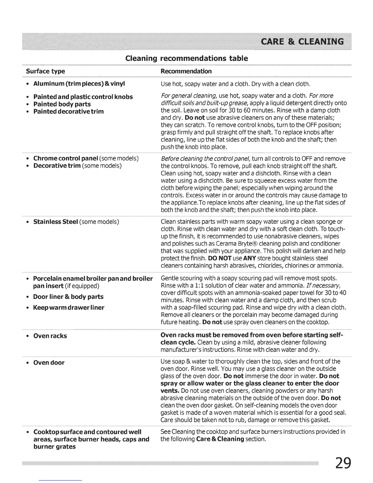 areas, surface burner heads, caps and the following Care &Cleaning section.