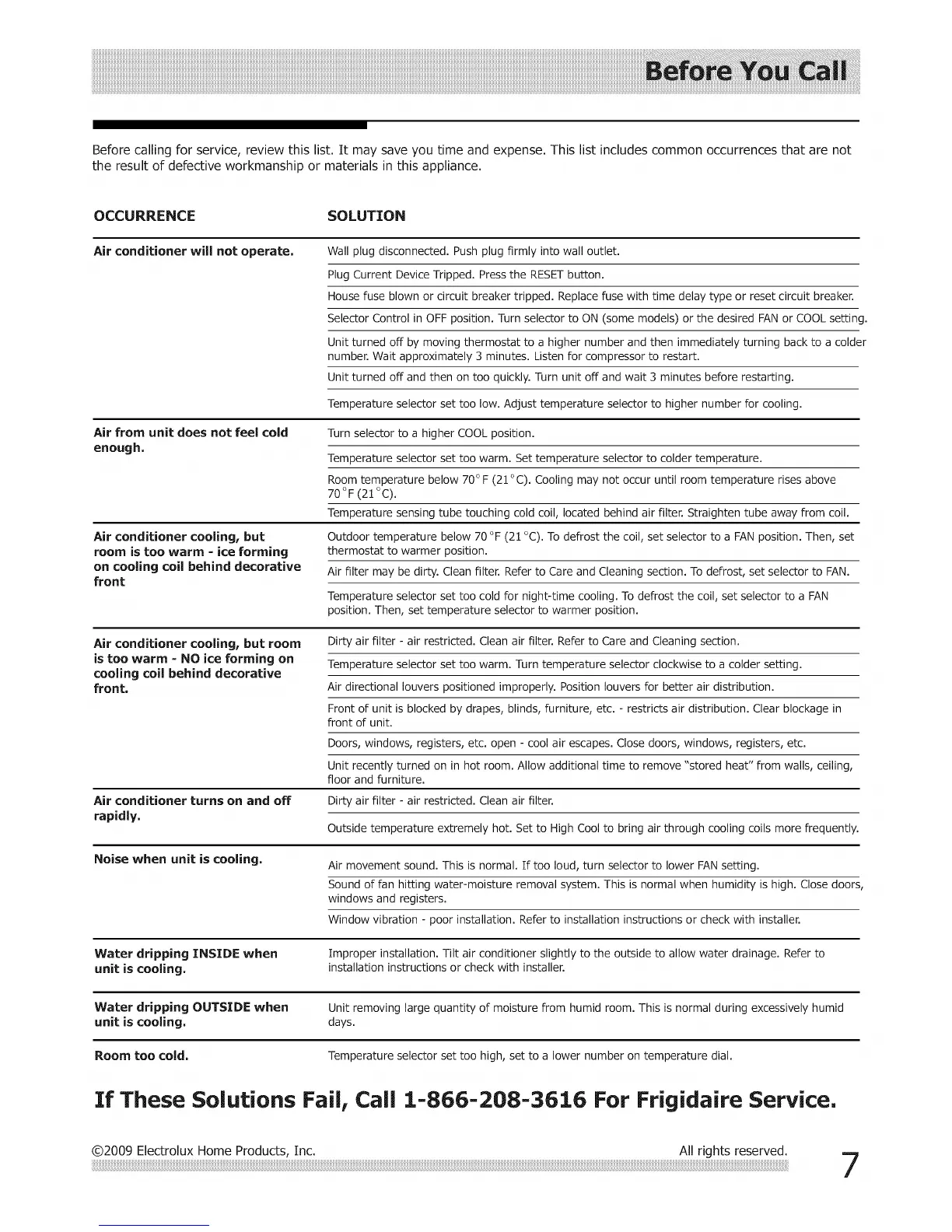 If These Solutions Fail, Call 1-866=208=3616 For Frigidaire Service,