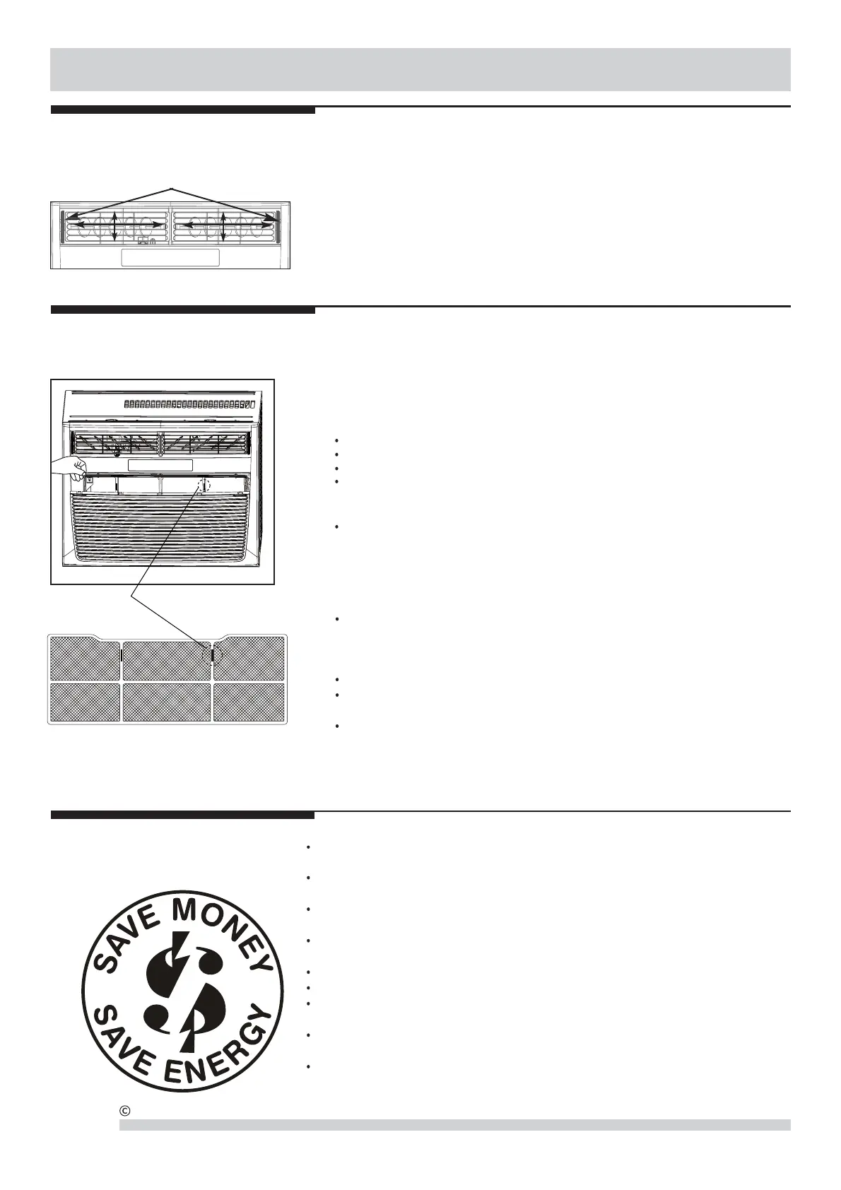 Air directional louvers control air flow direction. Your air conditioner has the louver