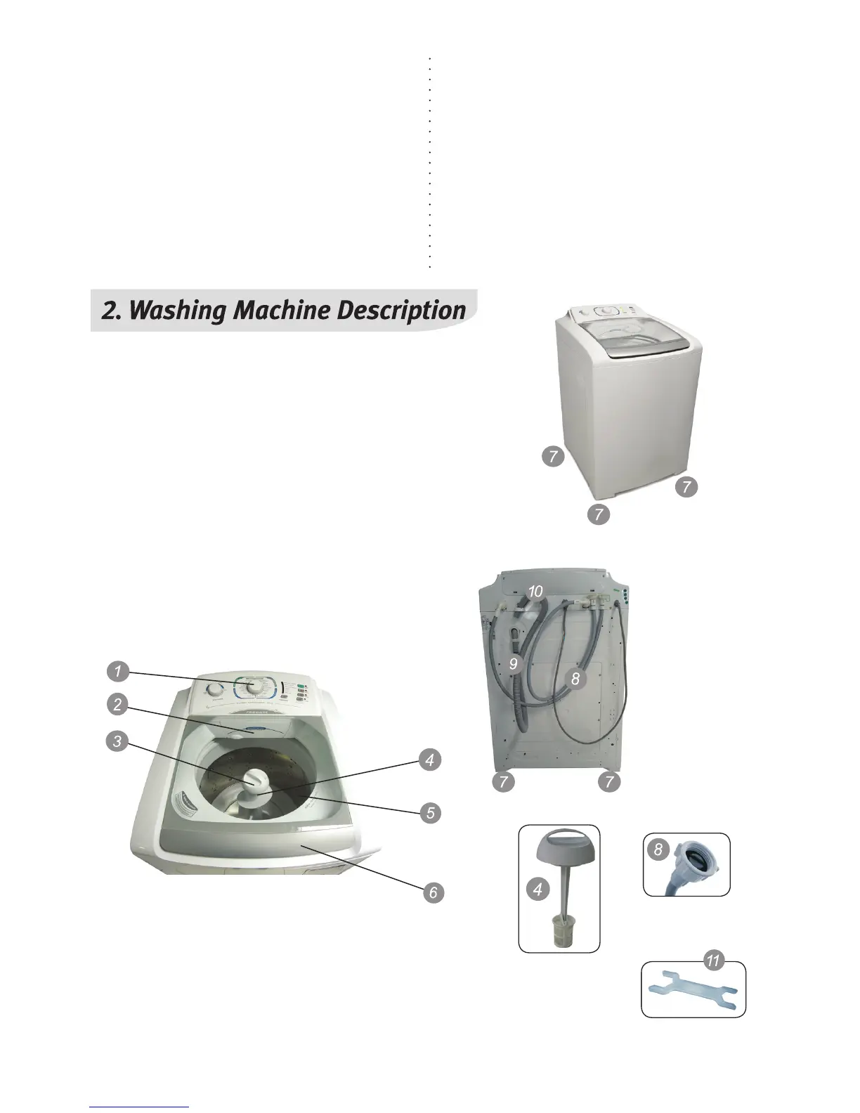 9. Drain hose (behind the washing machine)