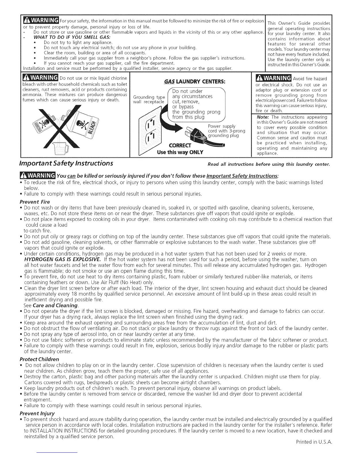 Importan t Safety Instructions Read all instructions before using this laundry center.