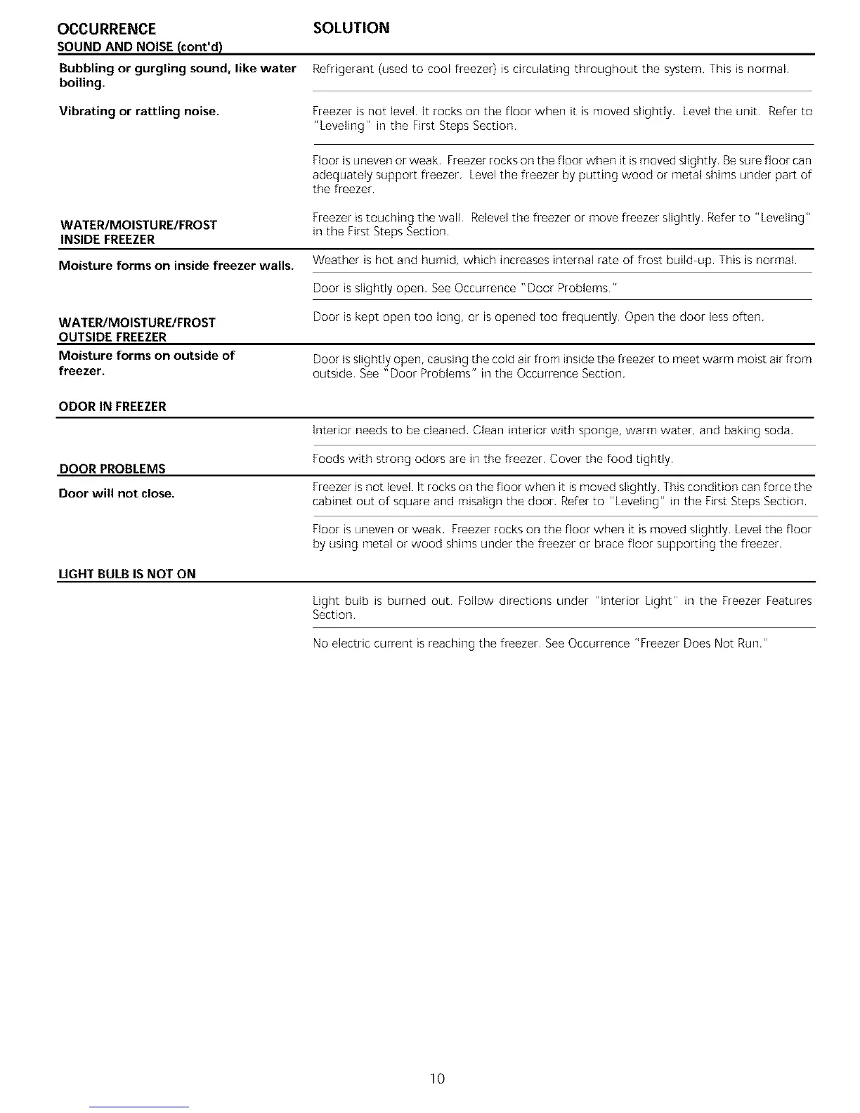 freezer, outside See "Door Problems" in the Occurrence Section,