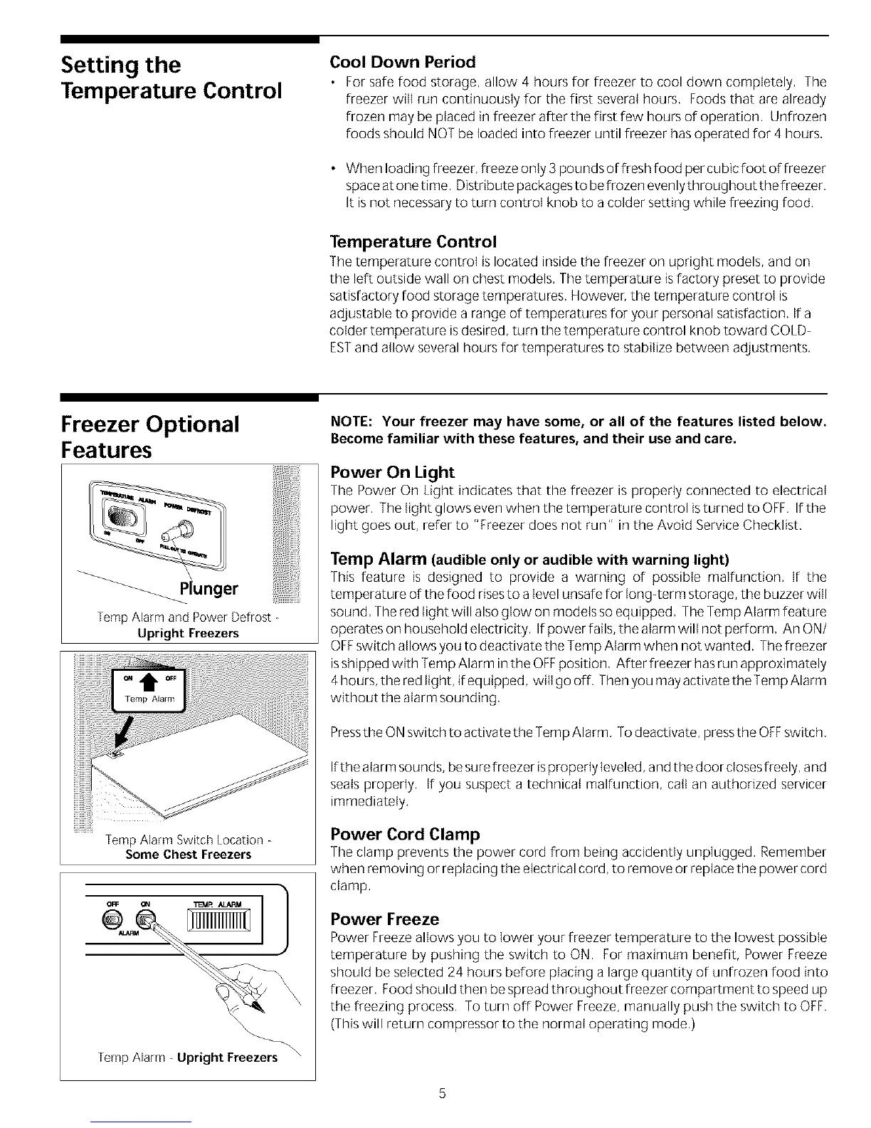 isshipped with Temp Alarm inthe OFFposition, After freezer hasrun approximately