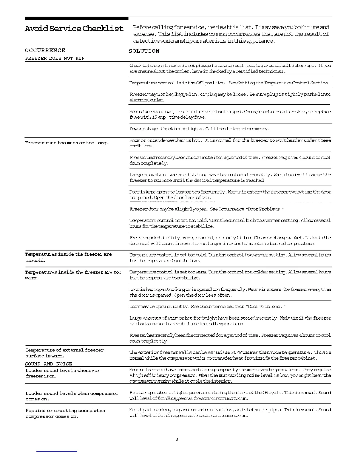 Freezerdoormaybe slightlyopen.SeeOccmrrence"DoorProblems."