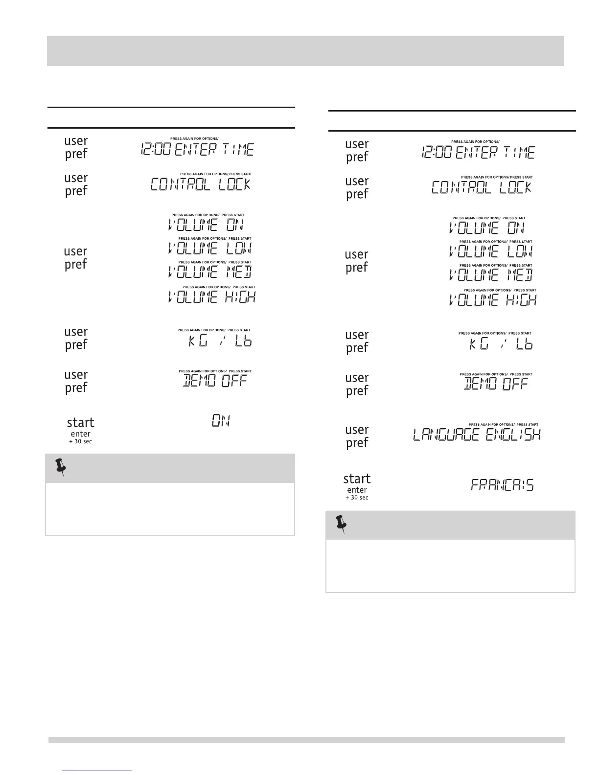 User Pref five times and then START.