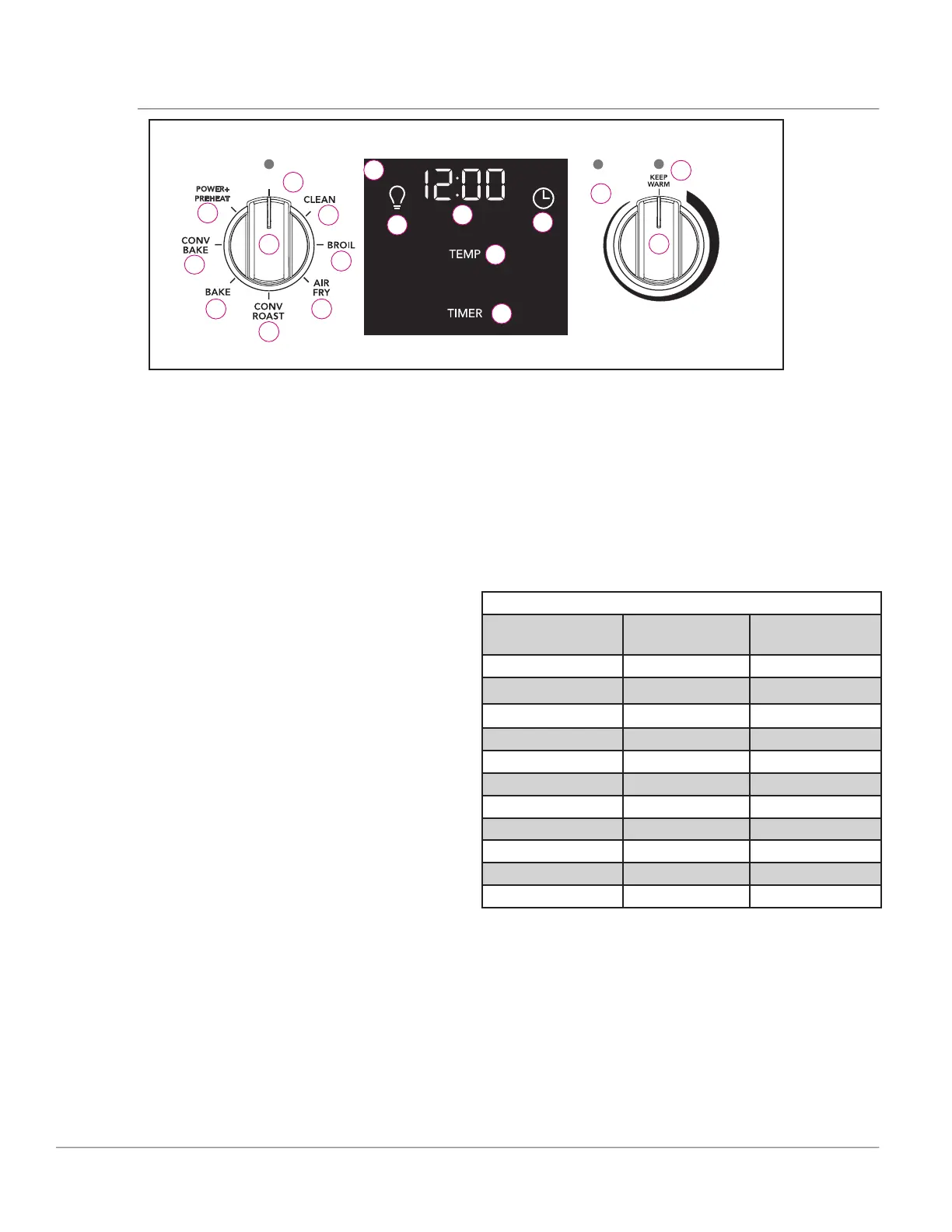 8. CONV BAKE uses a fan to circulate the oven’s heat