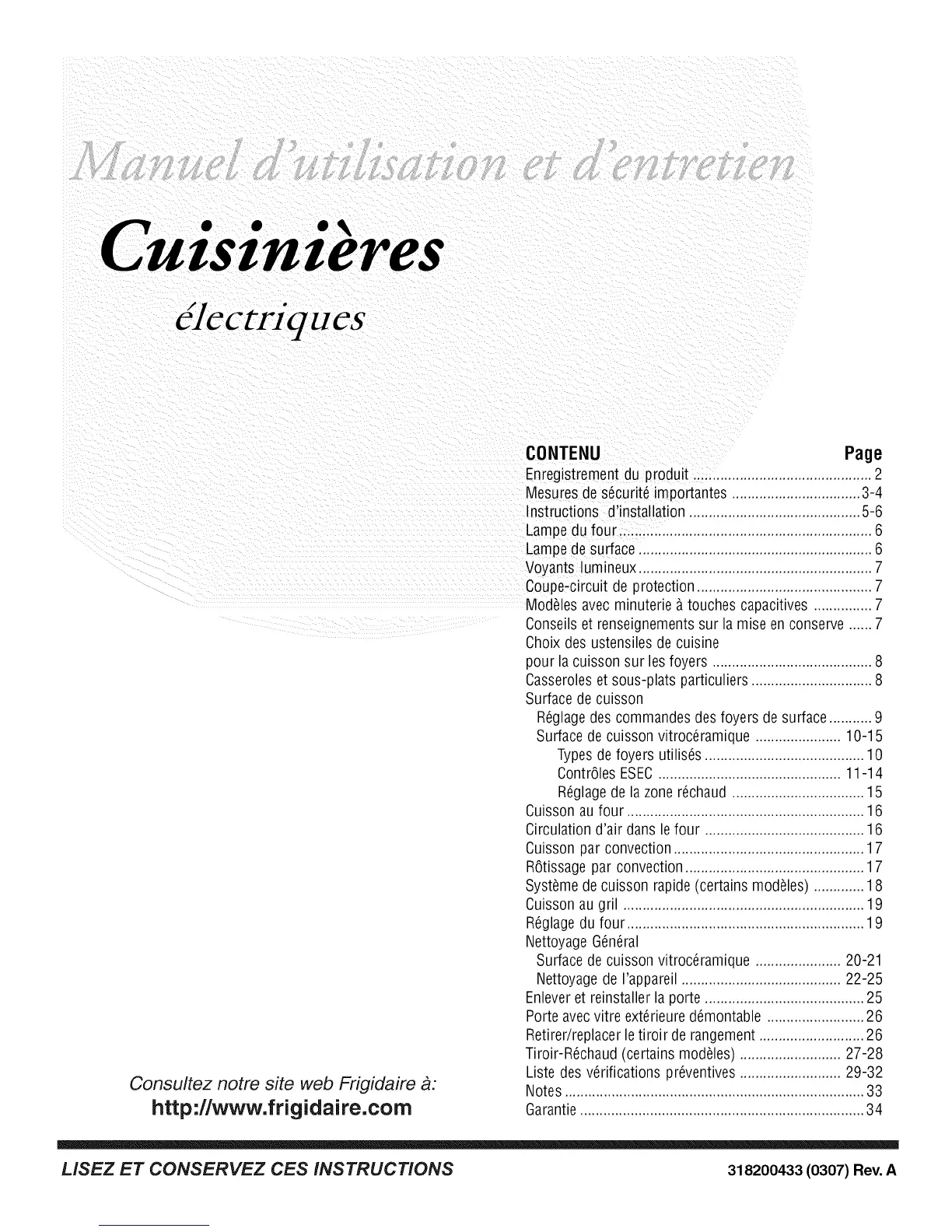 LISEZ ET CONSERVEZ CES INSTRUCTIONS 318200433 (0307) Rev. A