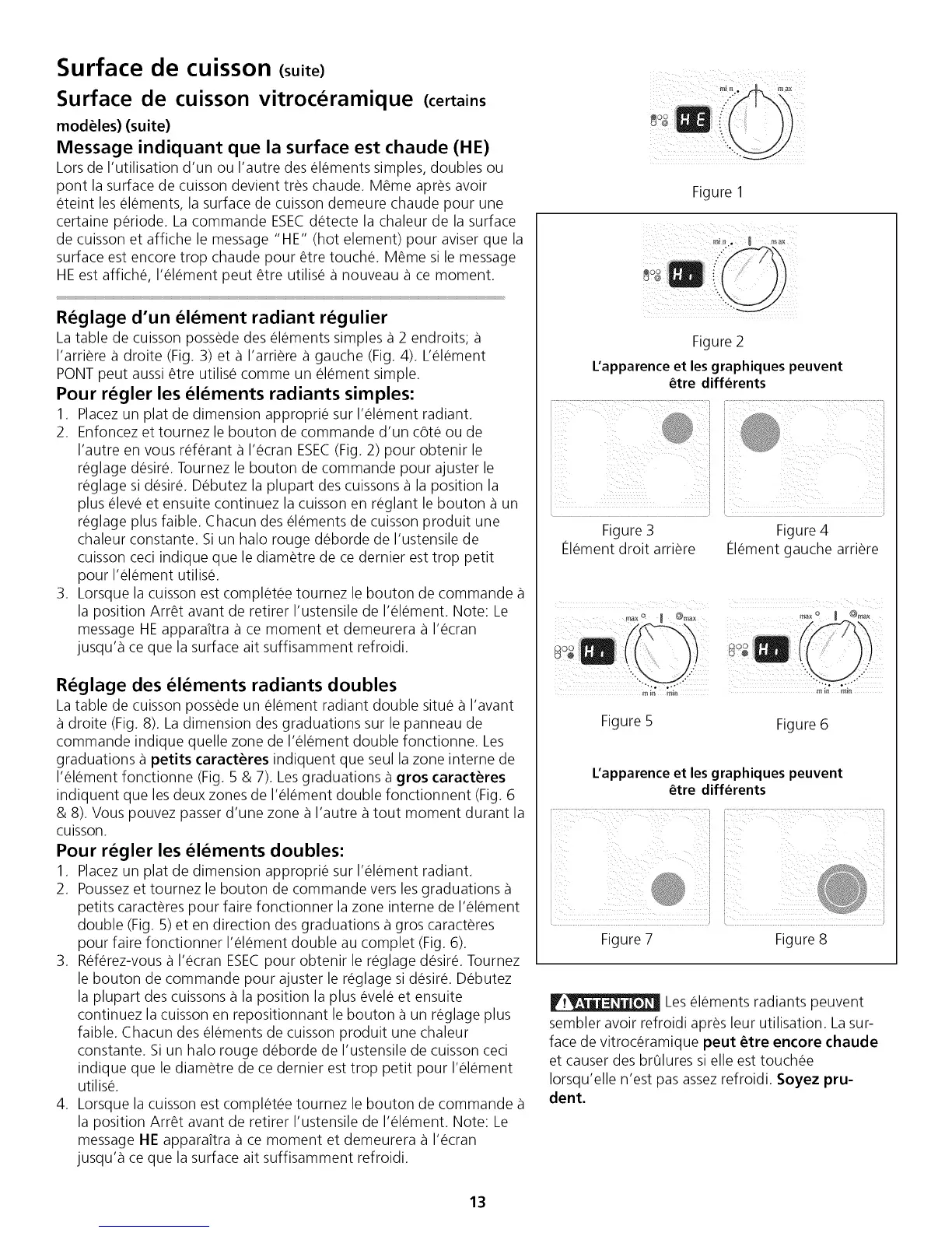 reglage plus faible. Chacun des elements de cuisson produit une