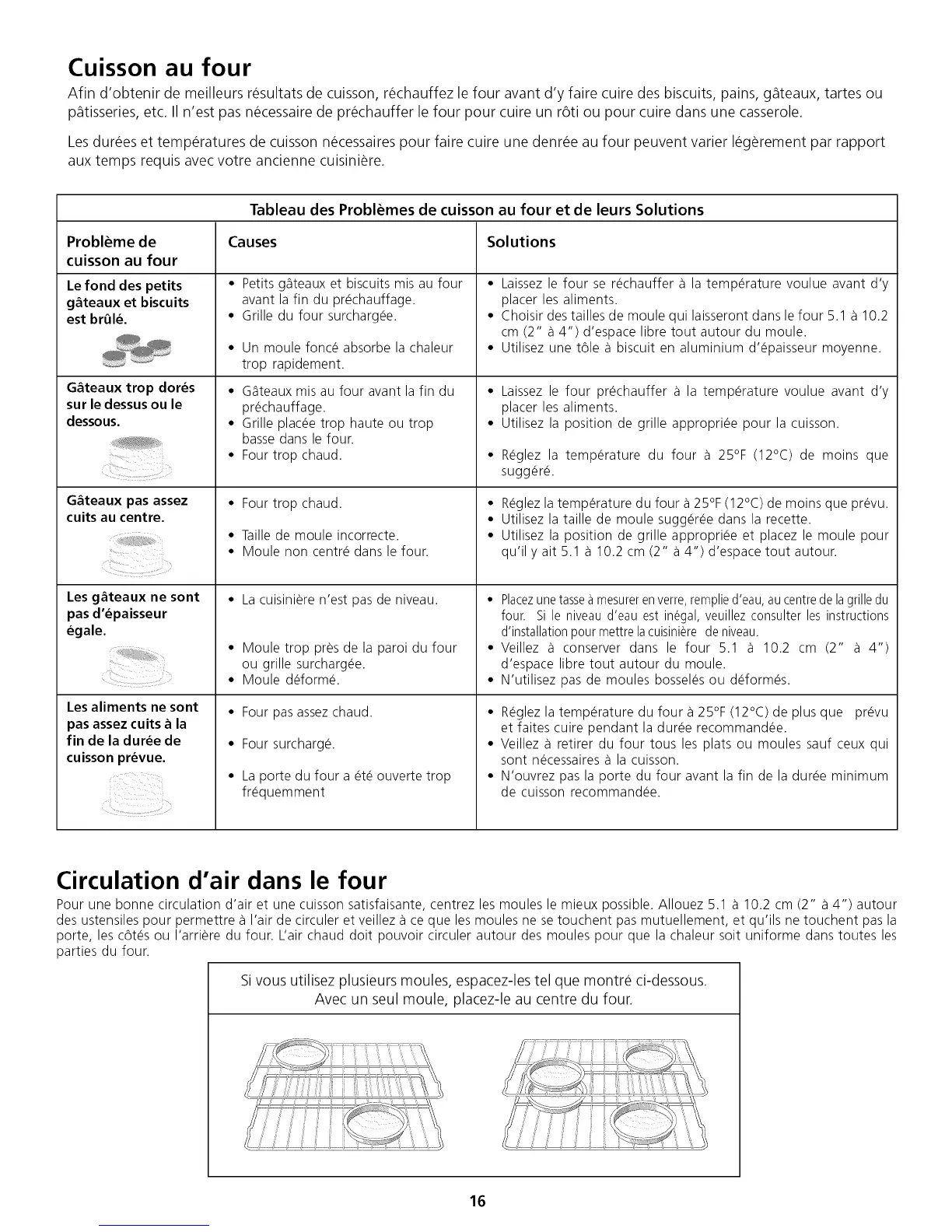 Pour une bonne circulation d'air et une cuisson satisfaisante, centrez les moules le mieux possible. AIIouez 5.1 a 10.2 cm (2" a 4") autour