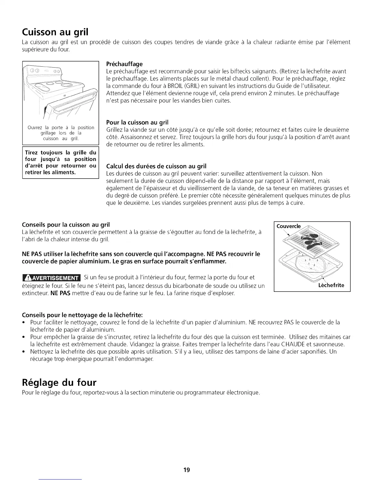 Le prechauffage est recommande pour saisir les biftecks saignants. (Retirez la lechefrite avant
