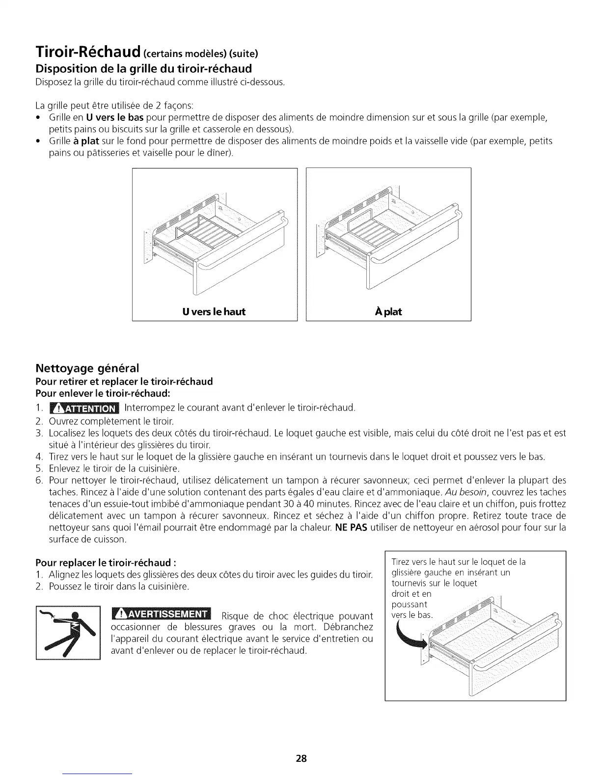 avant d'enlever ou de replacer le tiroir-rechaud.