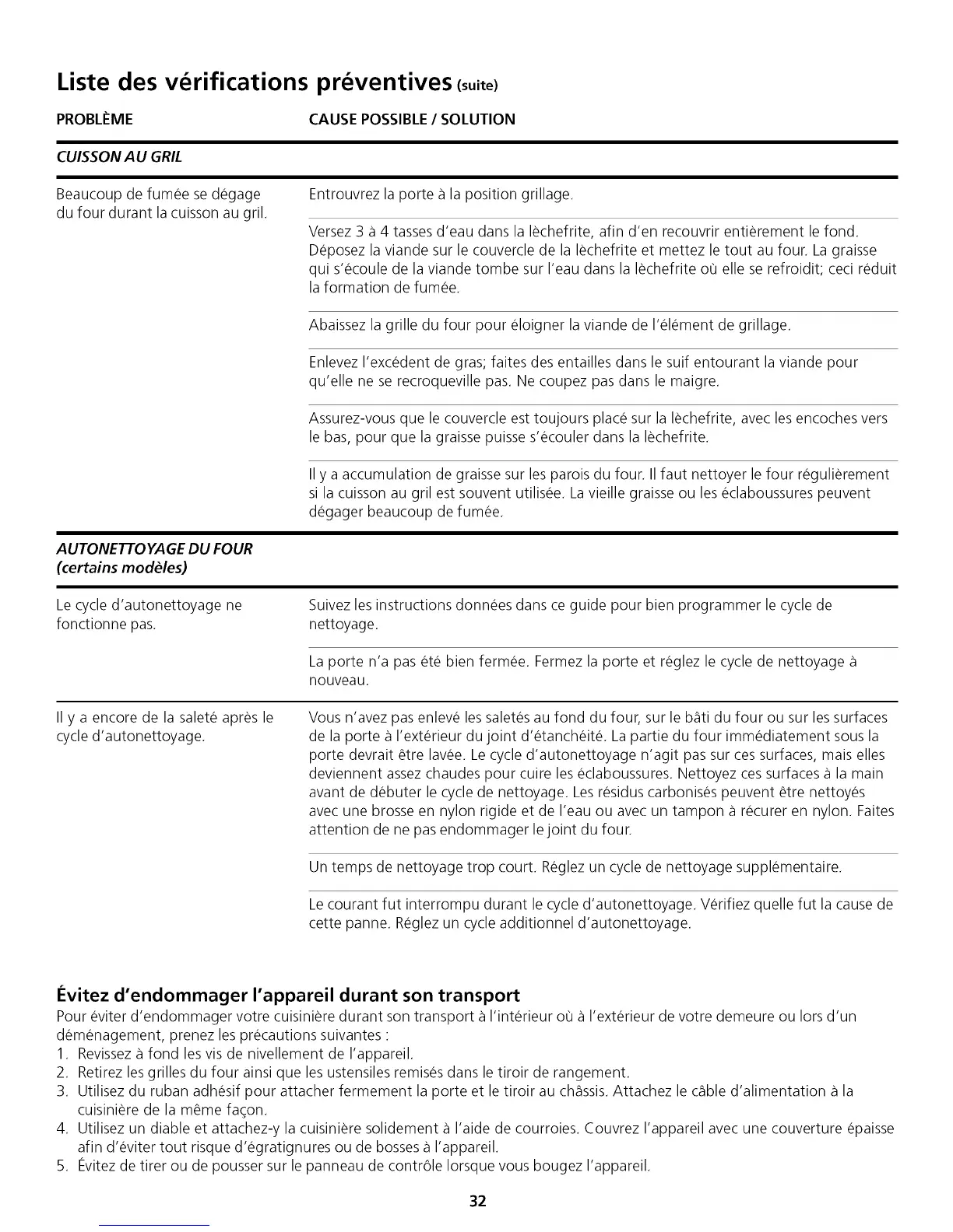 Pour eviter d'endommager votre cuisiniere durant son transport a I'interieur ou a I'exterieur de votre demeure ou Iors d'un