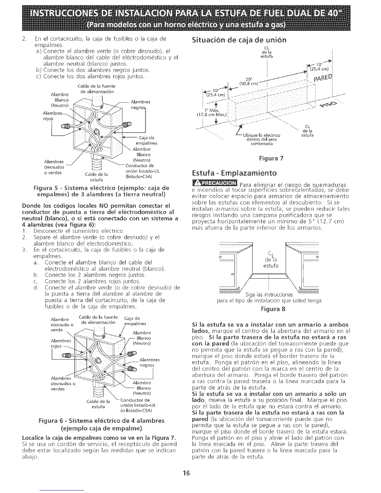 no permita que la estufa se pegue a ras con la pared),