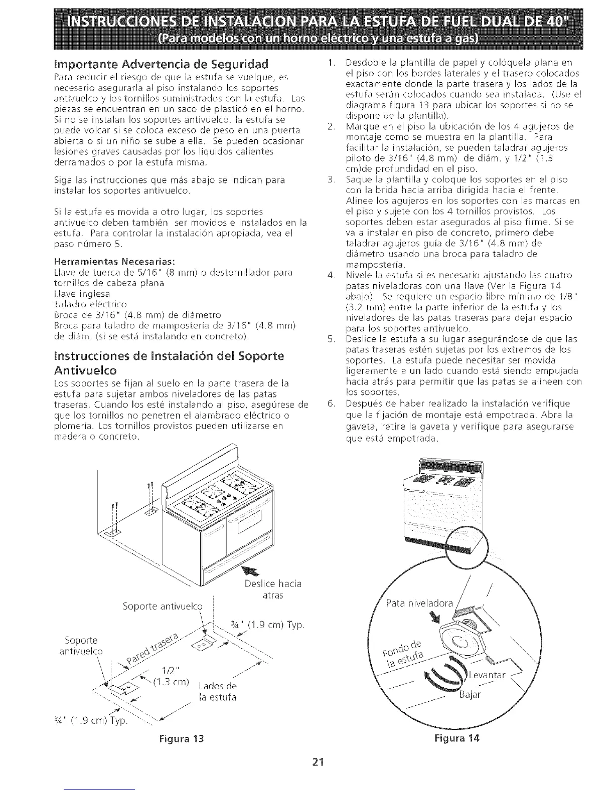 estufasera'n co!ocadoscuando sea instalada. (Use e!