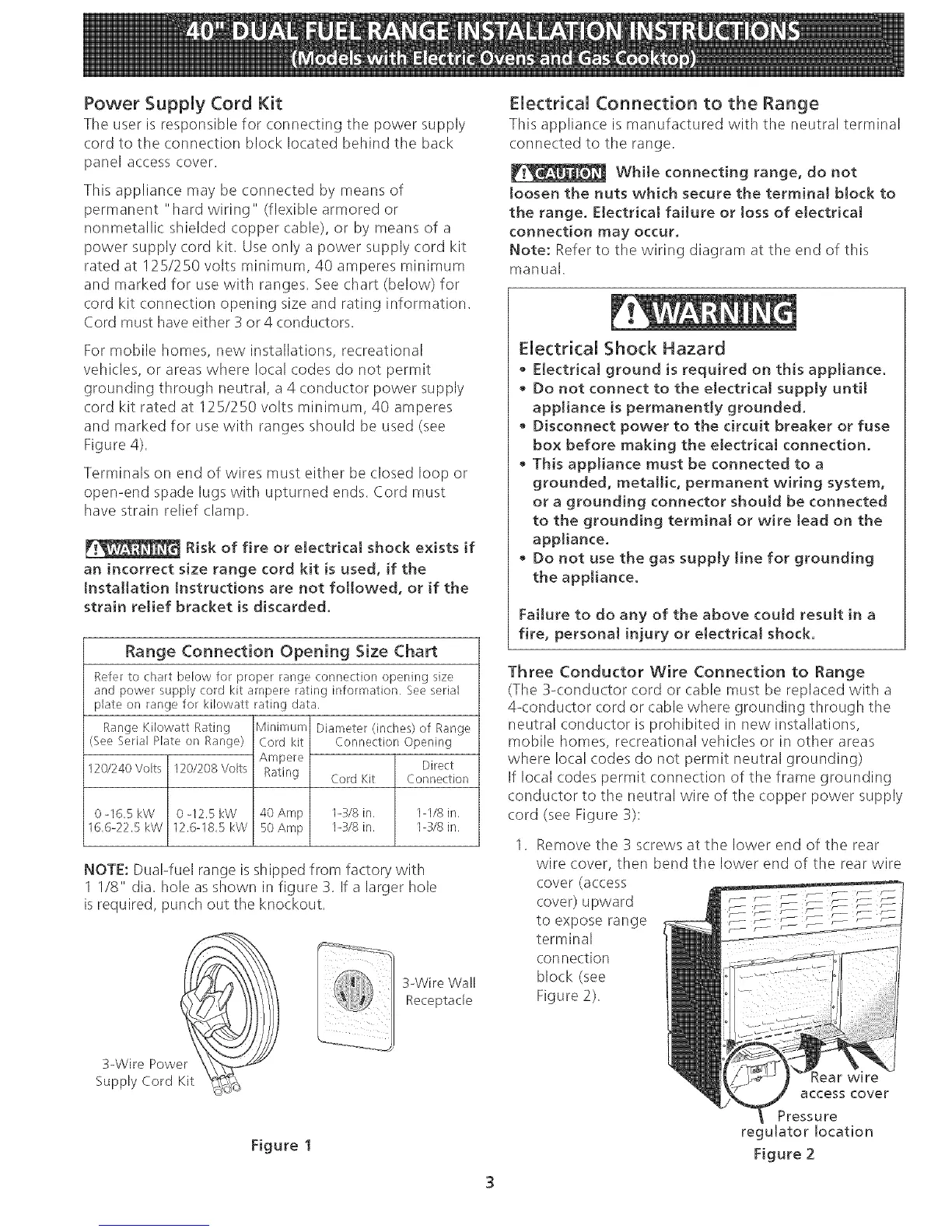 cord kit rated at 125/250 volts minimum, 40 amperes