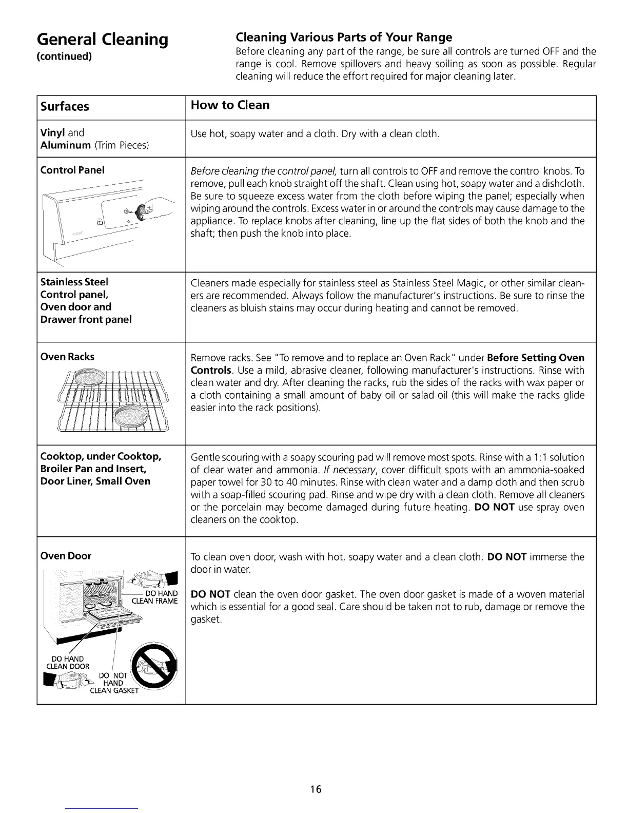 range is cool. Remove spillovers and heavy soiling as soon as possible. Regular