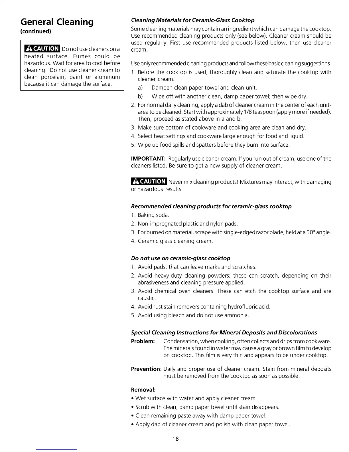 Special Cleaning Instructions for Mineral Deposits and Discolorations