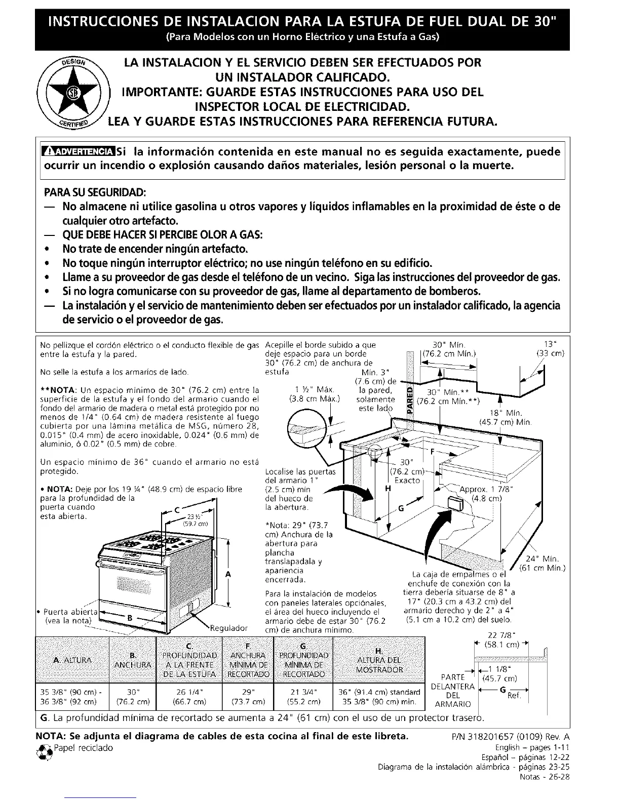 NOTA: Se adjunta el diagrama de cables de esta cocina al final de este libreta. P/N 318201657 (0109) Rev. A