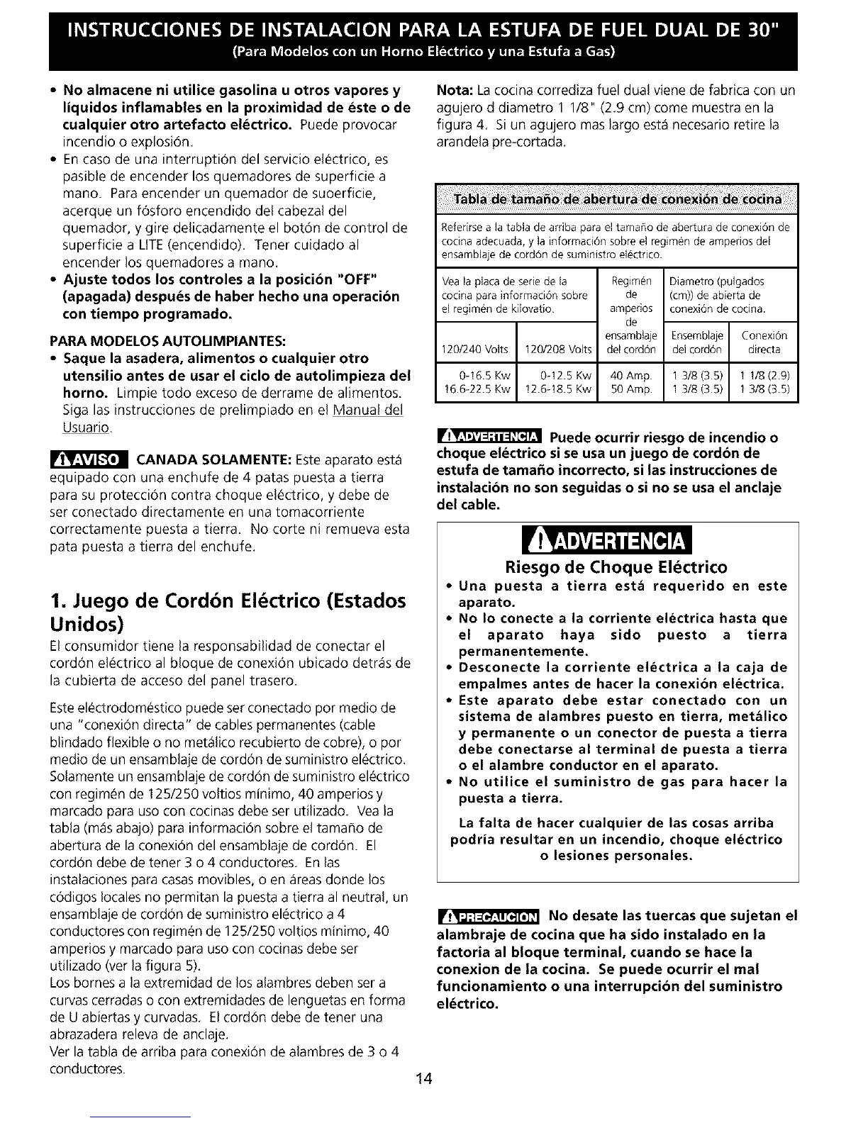 Referirse a la tabla de arriba para el tama_o de abertura de conexiOn de