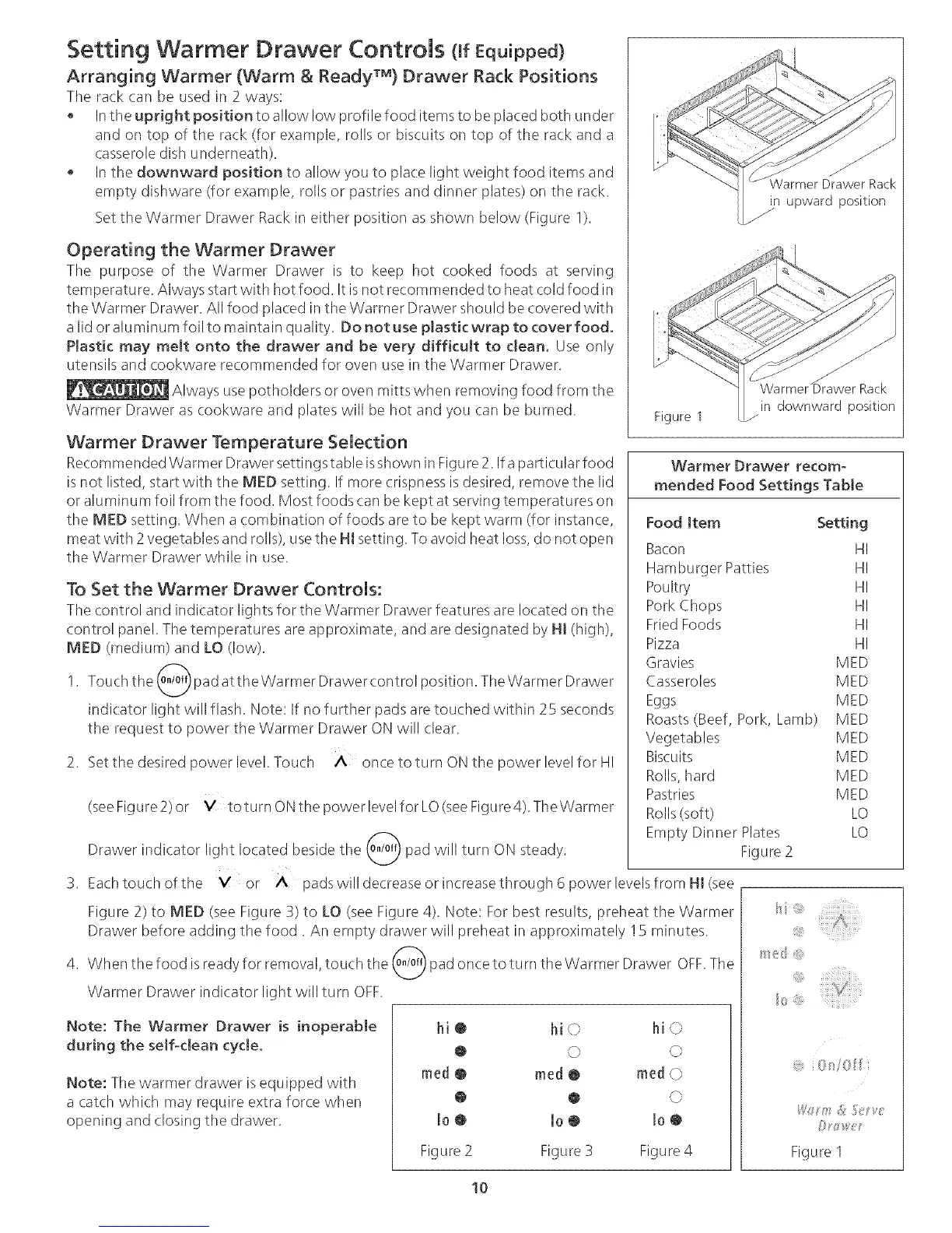 Recommended Warmer Drawer settingstable isshown in Figure2. If aparticular food
