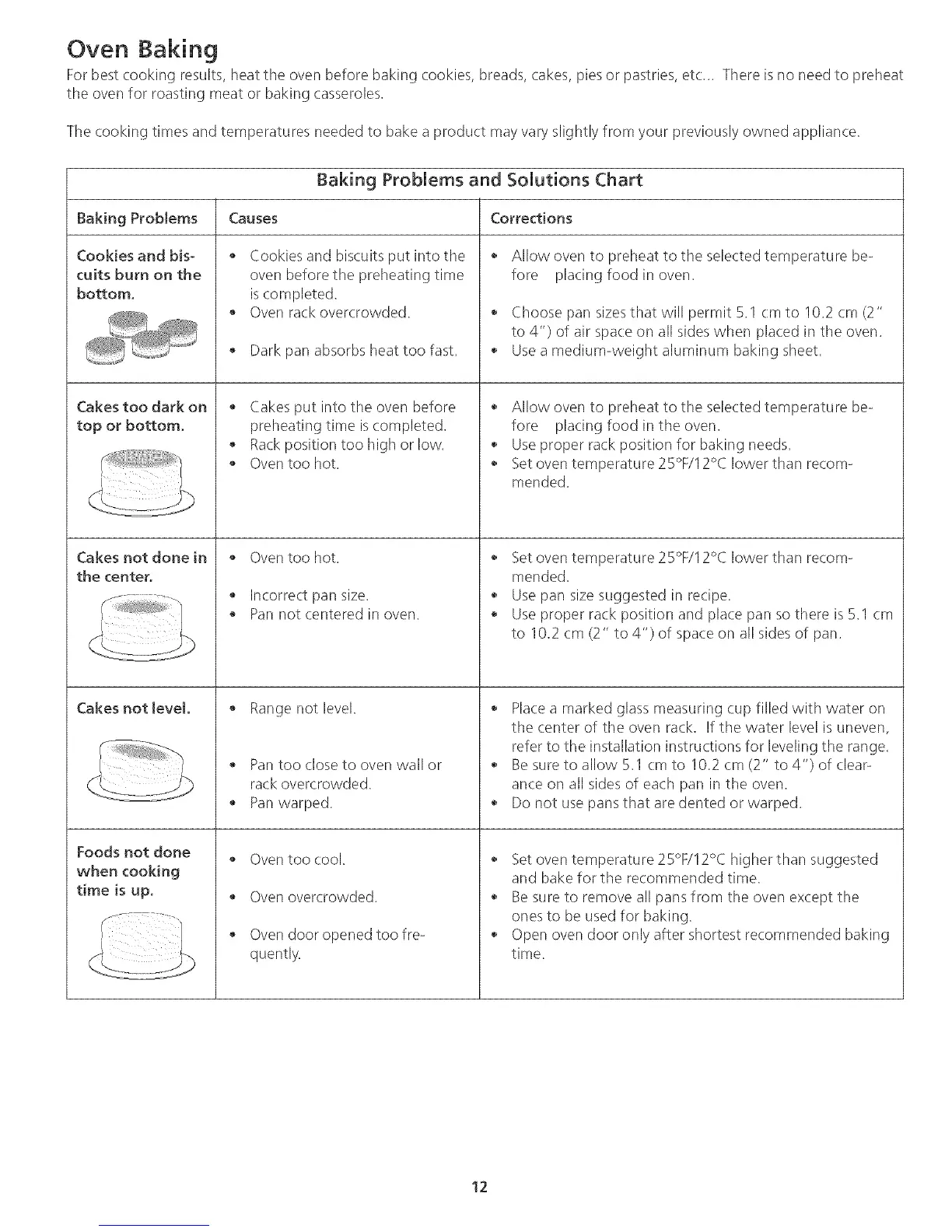 The cooking times and temperatures needed to bake a product may vary slightly from your previously owned appliance.