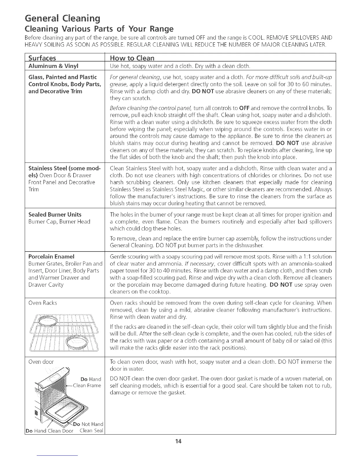 General Cleaning. DO NOT put burner parts in the dishwasher.
