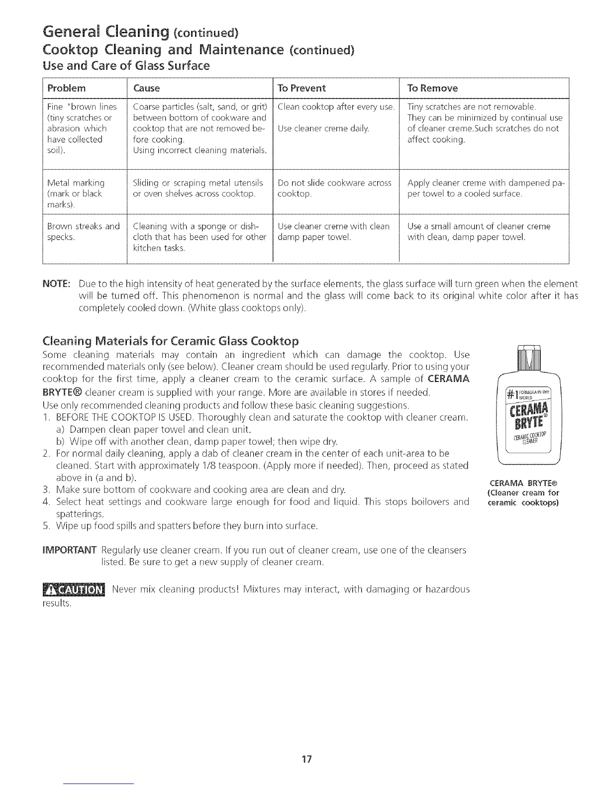 cooktop for the first time, apply a cleaner cream to the ceramic surface. A sample of CERAMA
