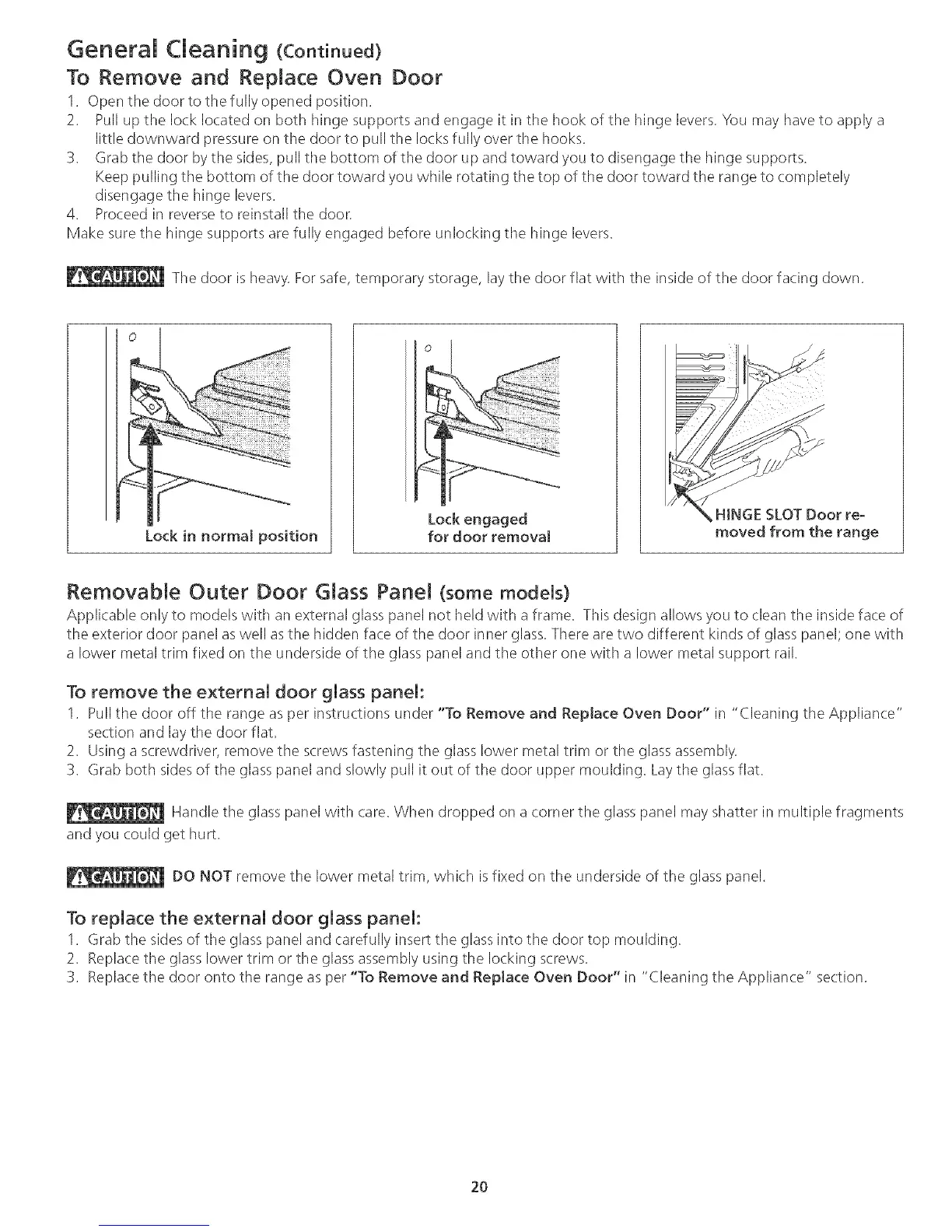 3. Replace the door onto the range as per "To Remove and Reptace Oven Door" in "Cleaning the Appliance" section.