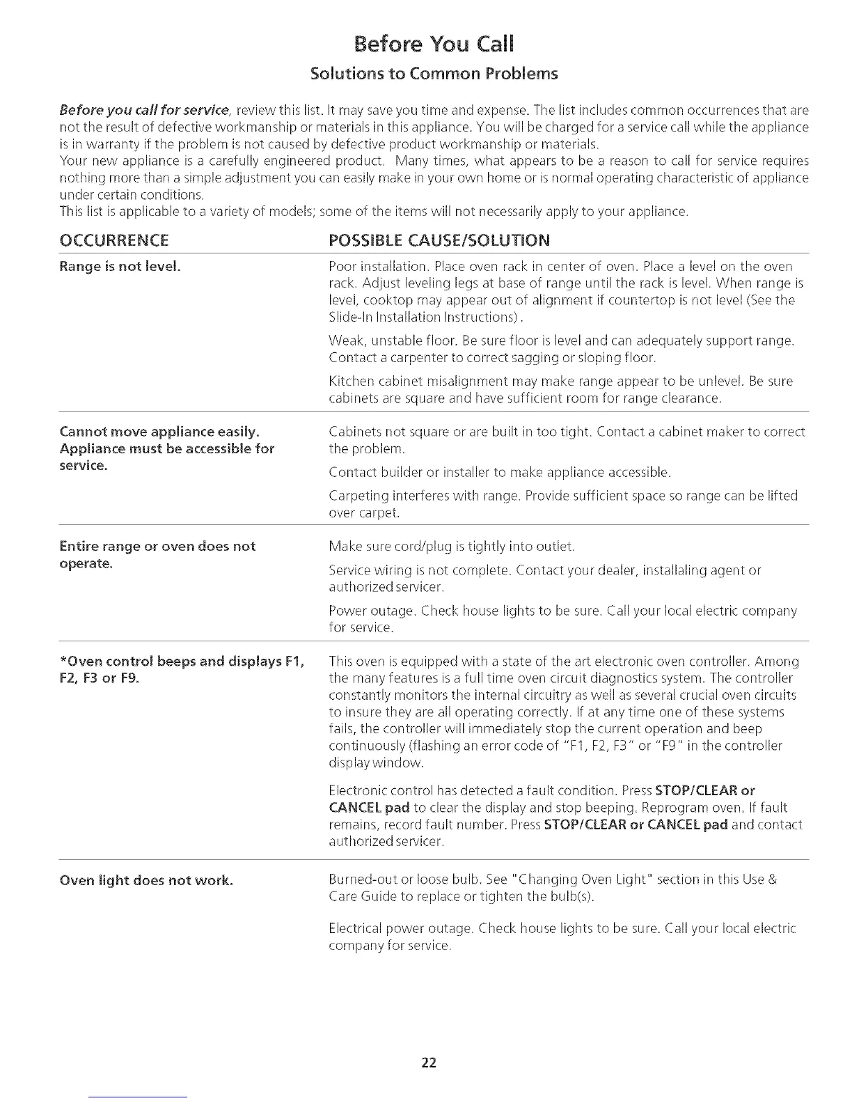 Your new appliance is a carefully engineered product. Many times, what appears to be a reason to call for service requires