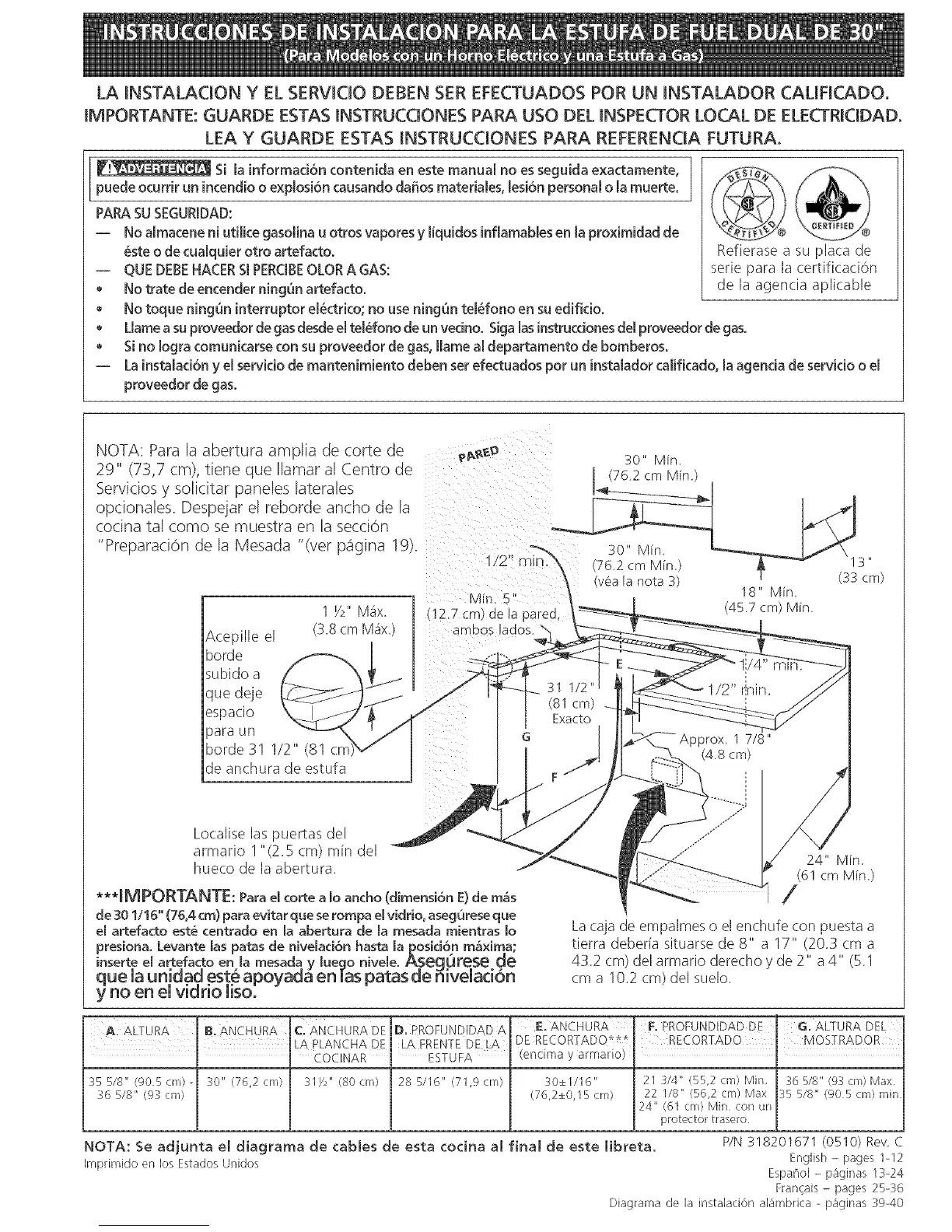 NOTA: Se adjunta el diagrama de cables de esta cocina al final de este libreta. PIN 318201671 (0510) Rev C