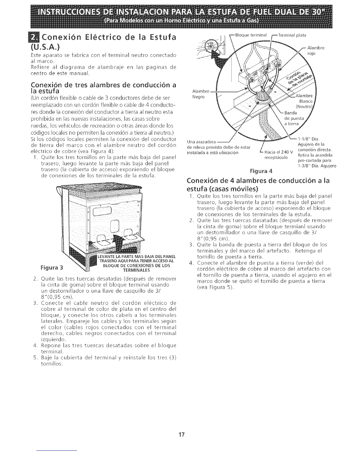 de conexiones de los terminales de la estufa,
