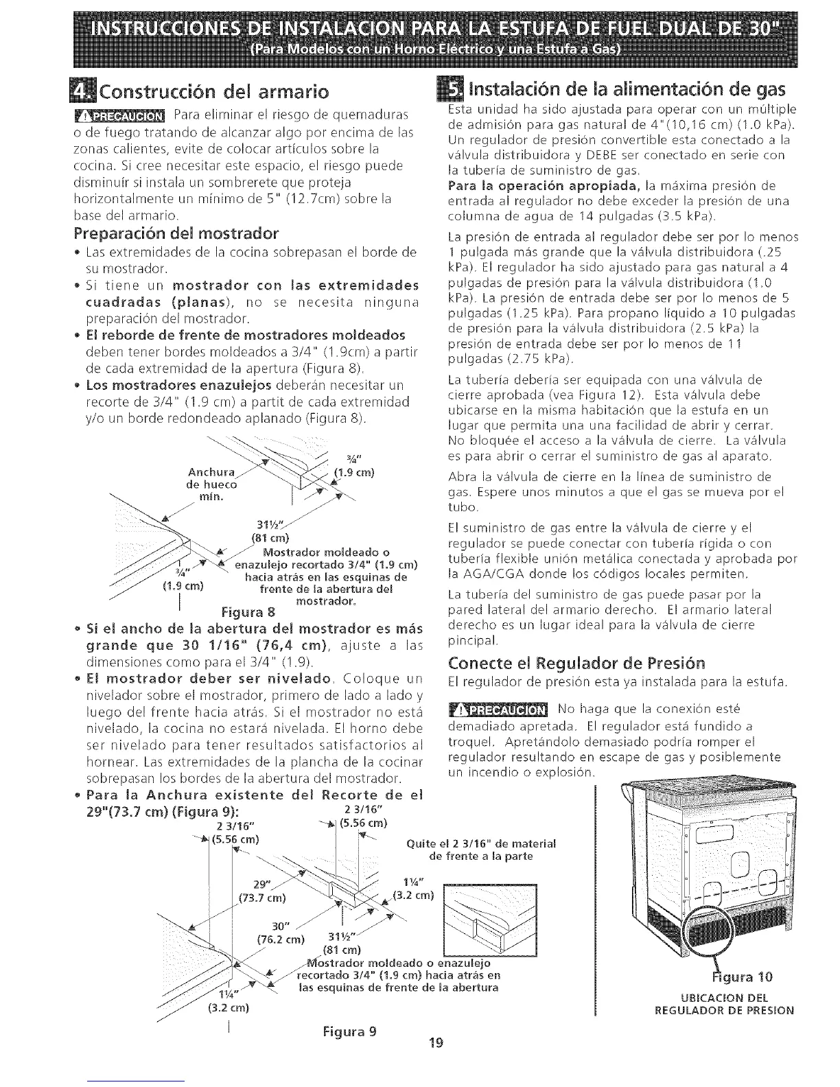 horizontalmente un m[nimo de 5" (!2.7cm) sobre la