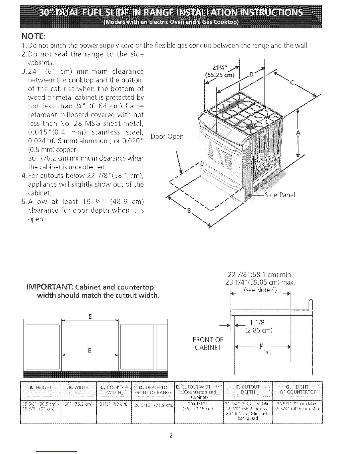 % 5/8" (90,5 crn) - 30" (76,2 crn) :_1Y2"(80 crn) 28 5/I6" (71,9 cm) 30±I/16" 21 W4" (55,2 cnl) Min 36 5/8" (93 cm) Max
