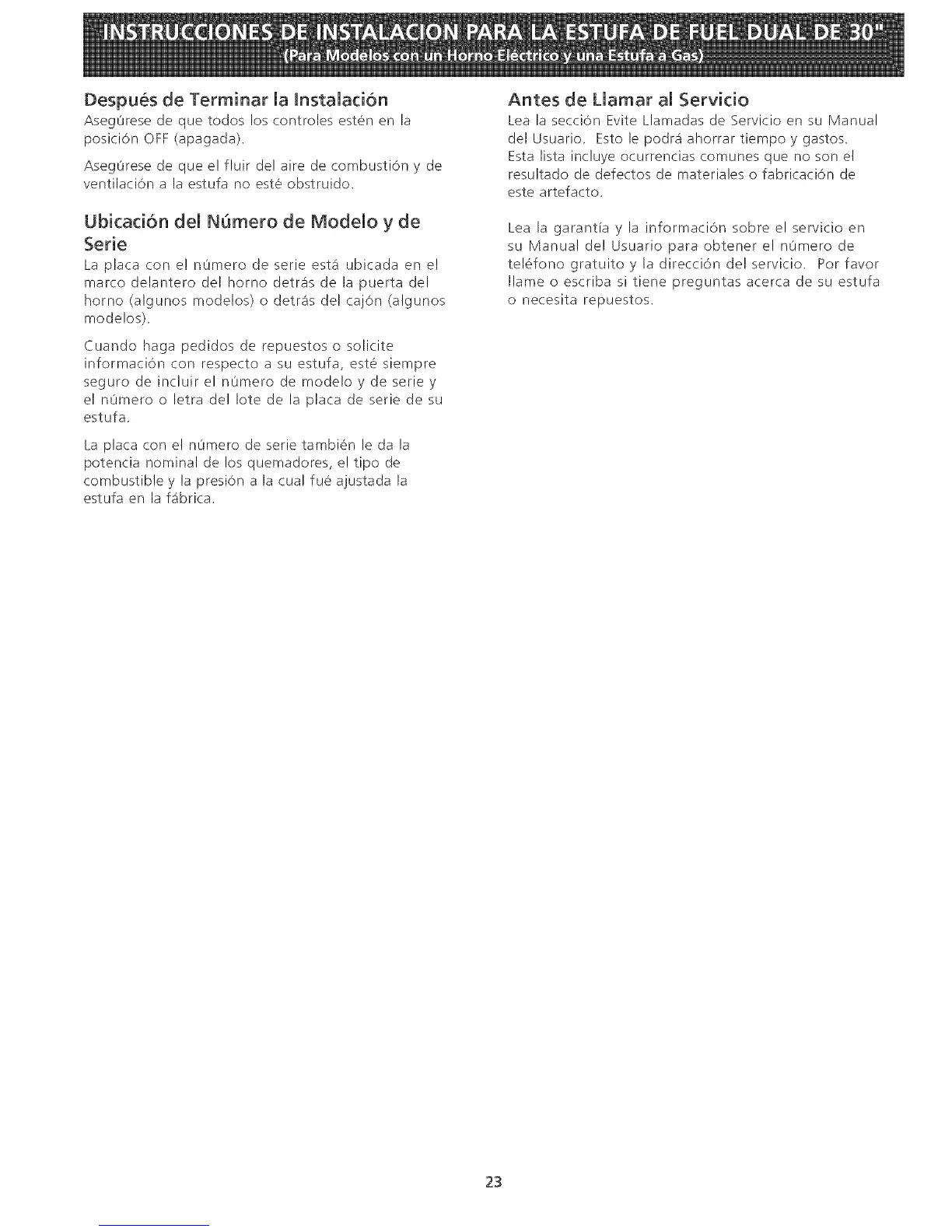 Lea la secci6n Evite Llamadas de Servicio en su Manual