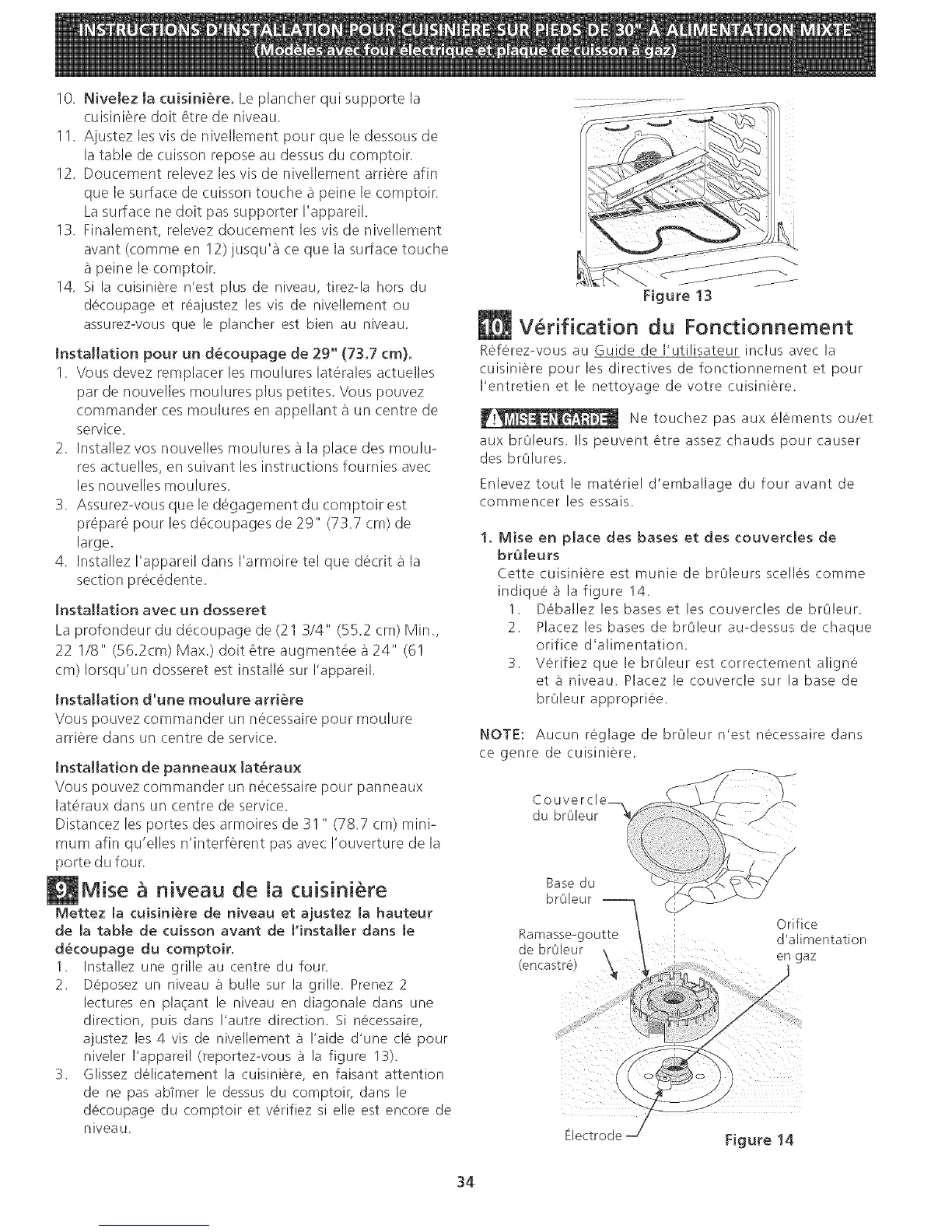 niveler I'appareil (reportez-vous a la figure 13).