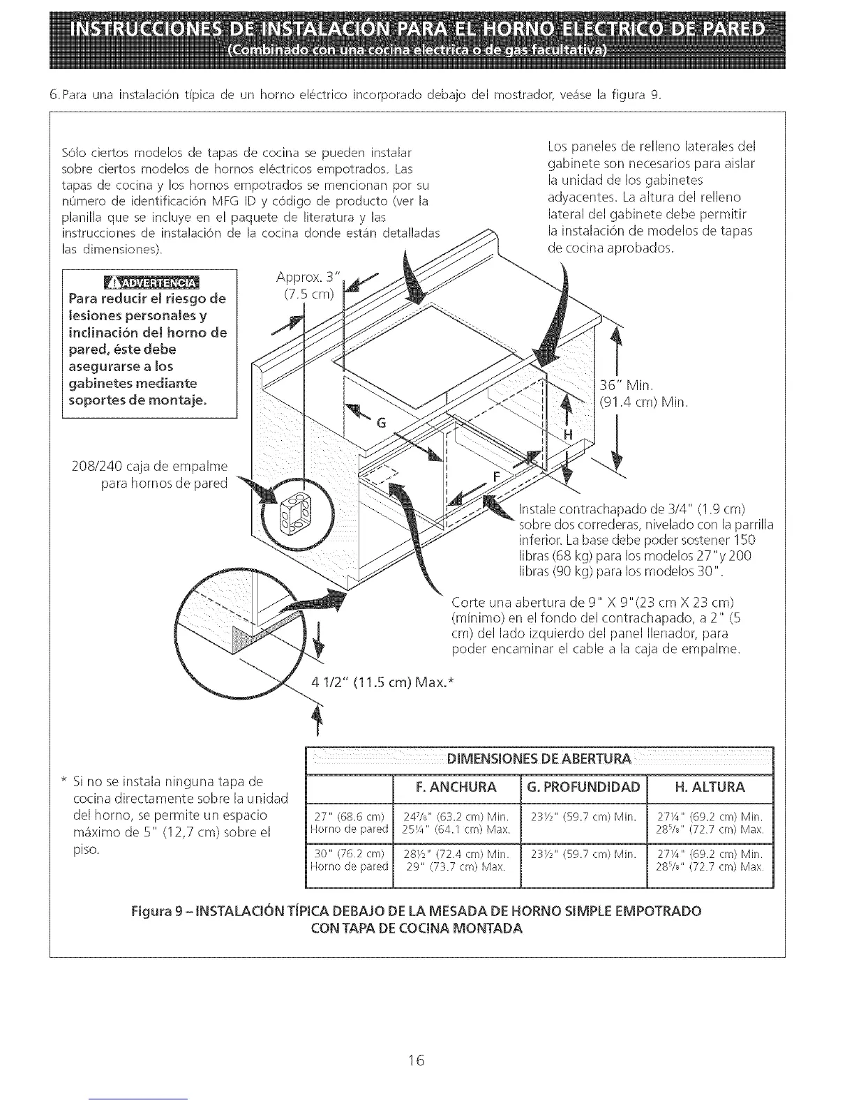 6. Para una instalaci6n tfpica de un homo el6ctrico incorporado debajo del mostrado< ve_ise la figura 9.