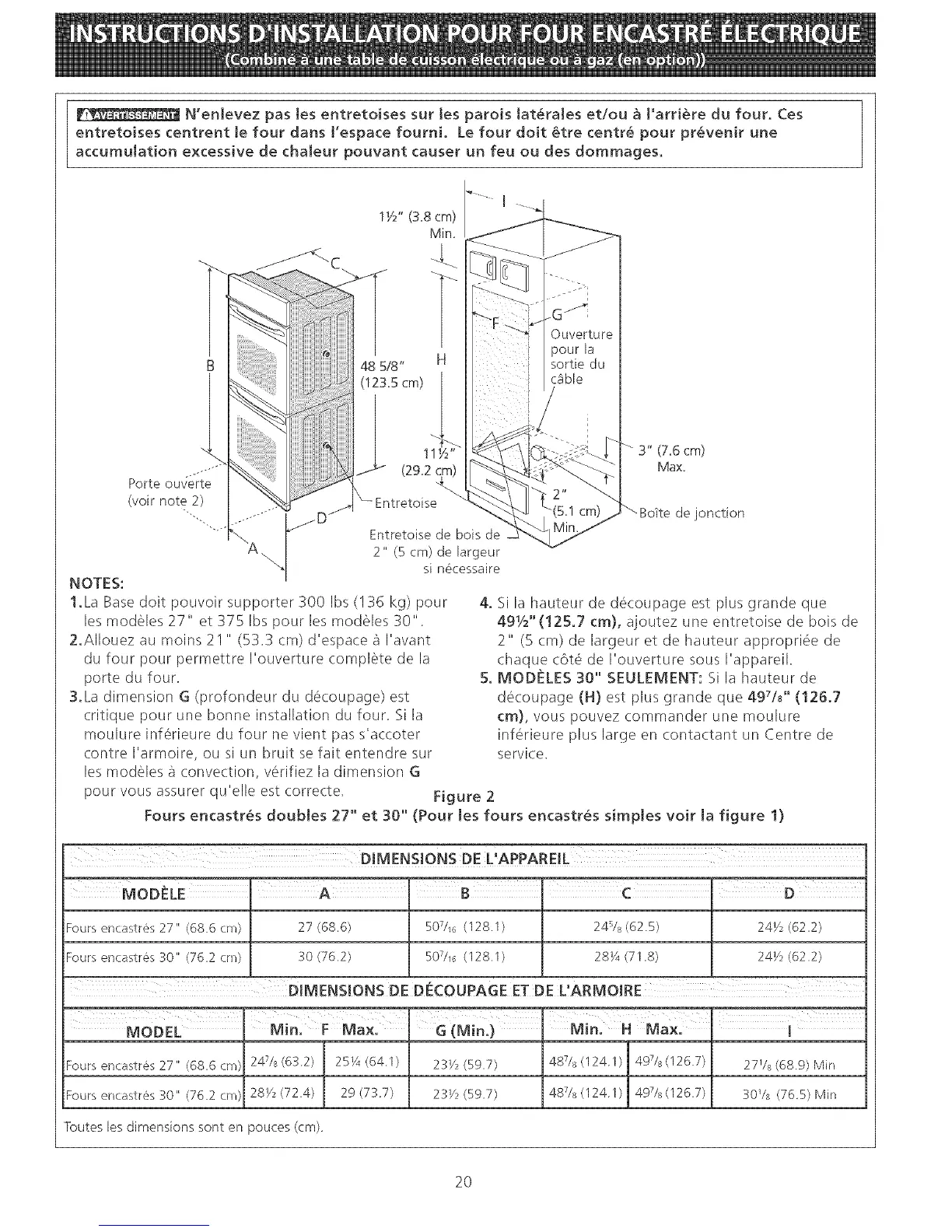 Fours encastr_s doubles 27" et 30" (Pour tes fours encastr_s simpJes voir ta figure 1)