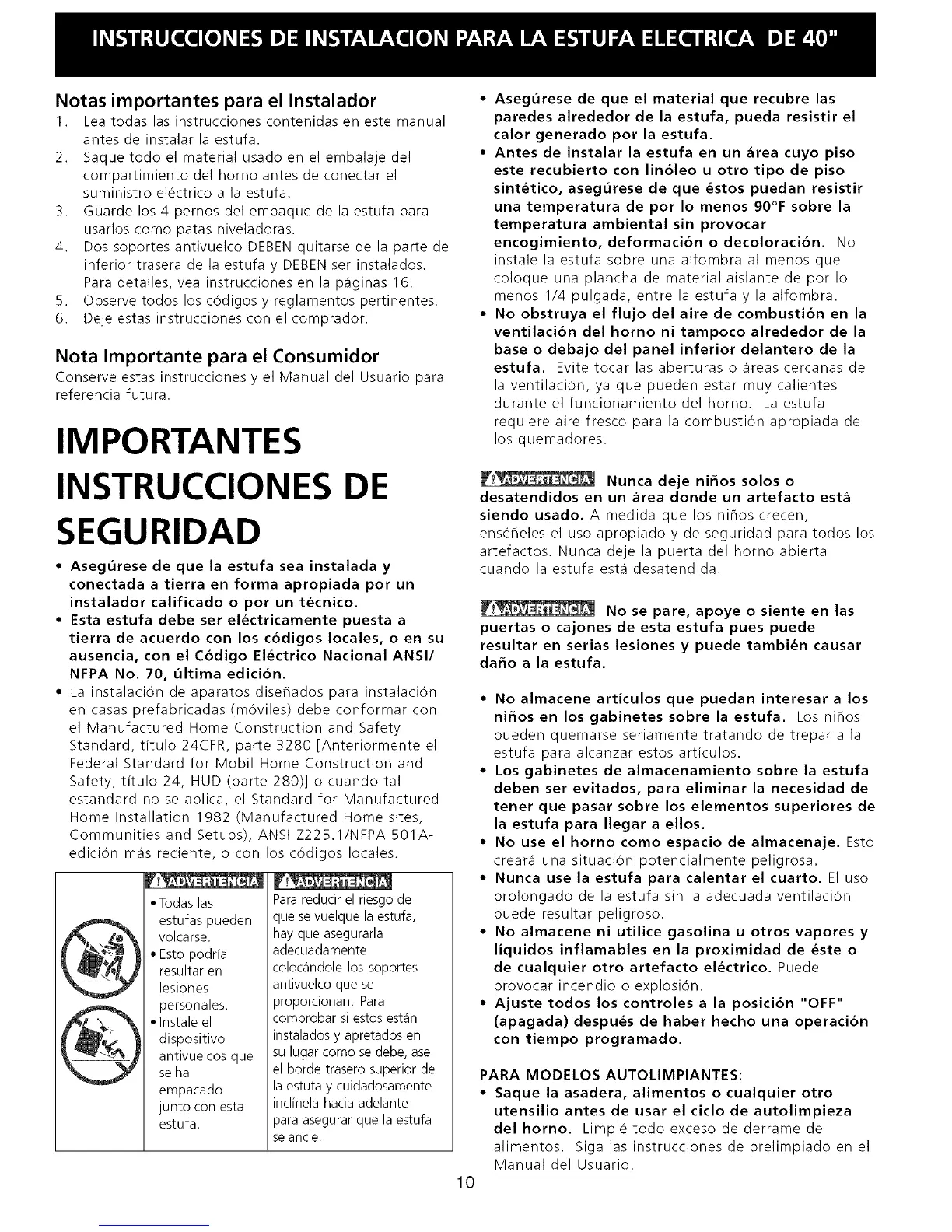menos 1/4 pulgada, entre la estufa y la alfombra.